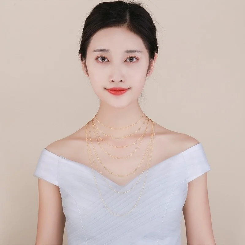 35-80 cm réel 925 en argent Sterling avec perles de couleur or gourmette chaîne colliers ras du cou pour femmes filles bijoux Kolye Collares Ketting