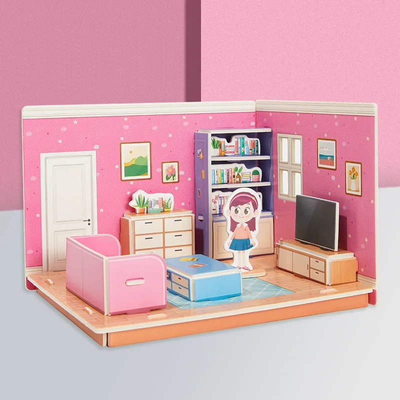 4 pièces/ensemble enfants à la main bricolage chambre modèle Puzzle cuisine chambre salon salle de bain 3D stéréo carton Puzzle