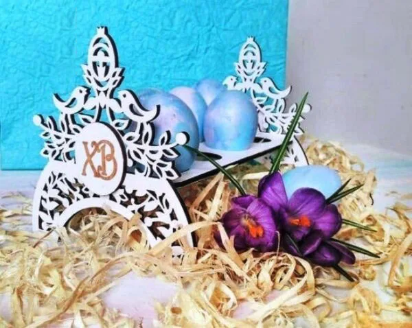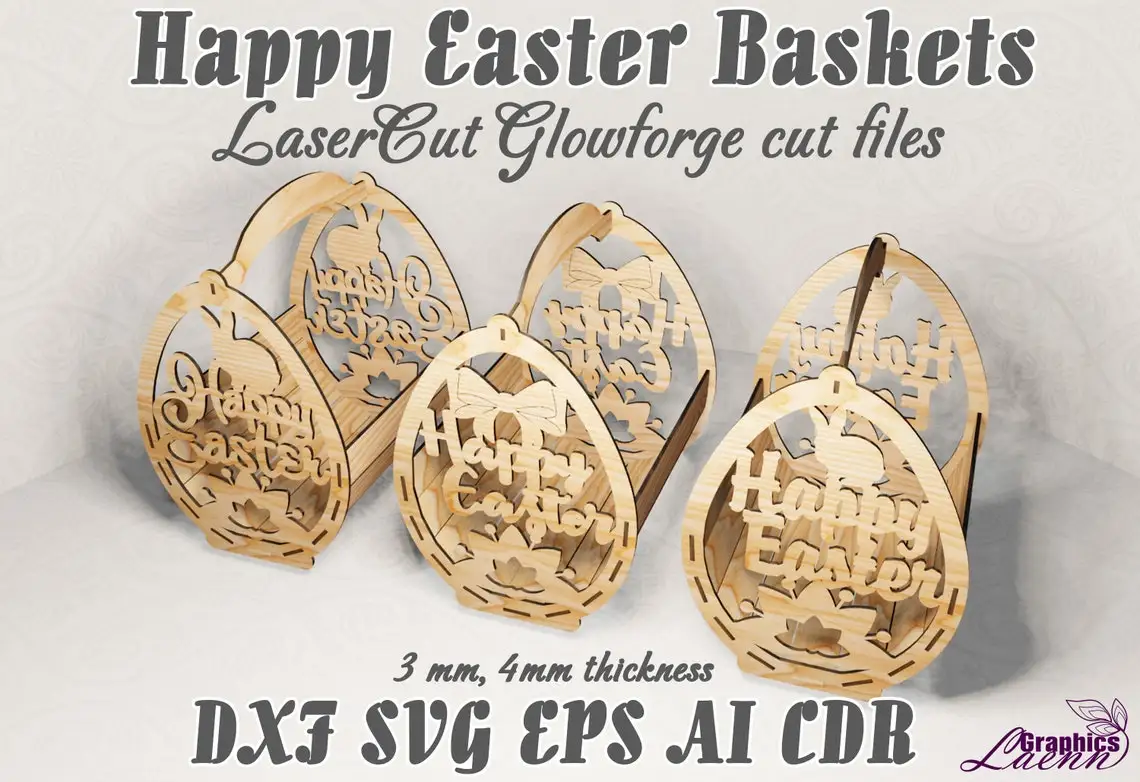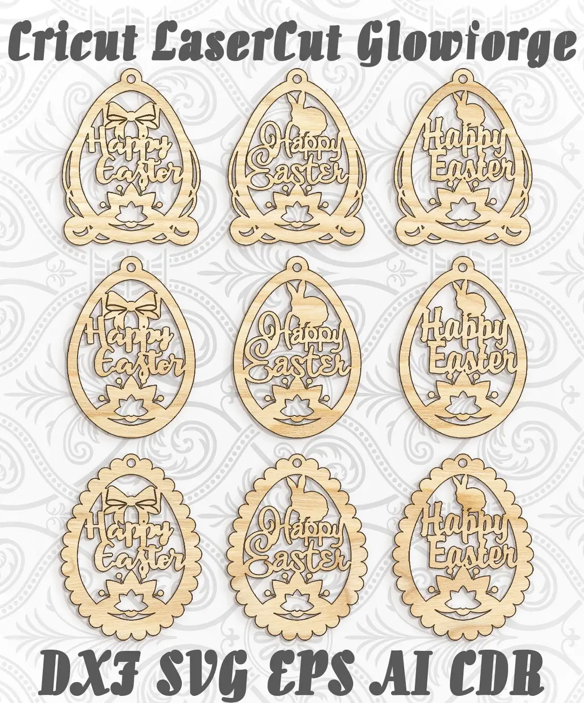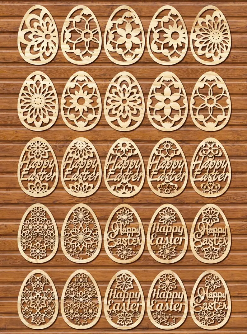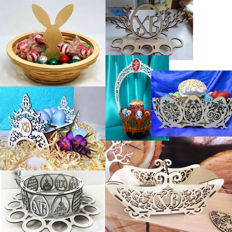 40 oeufs de panier de lapin de pâques, fichiers de dessin vectoriel 2D pour découpé au Laser DXF CDR Fomats, modèles d'ornements Cricut, décoration