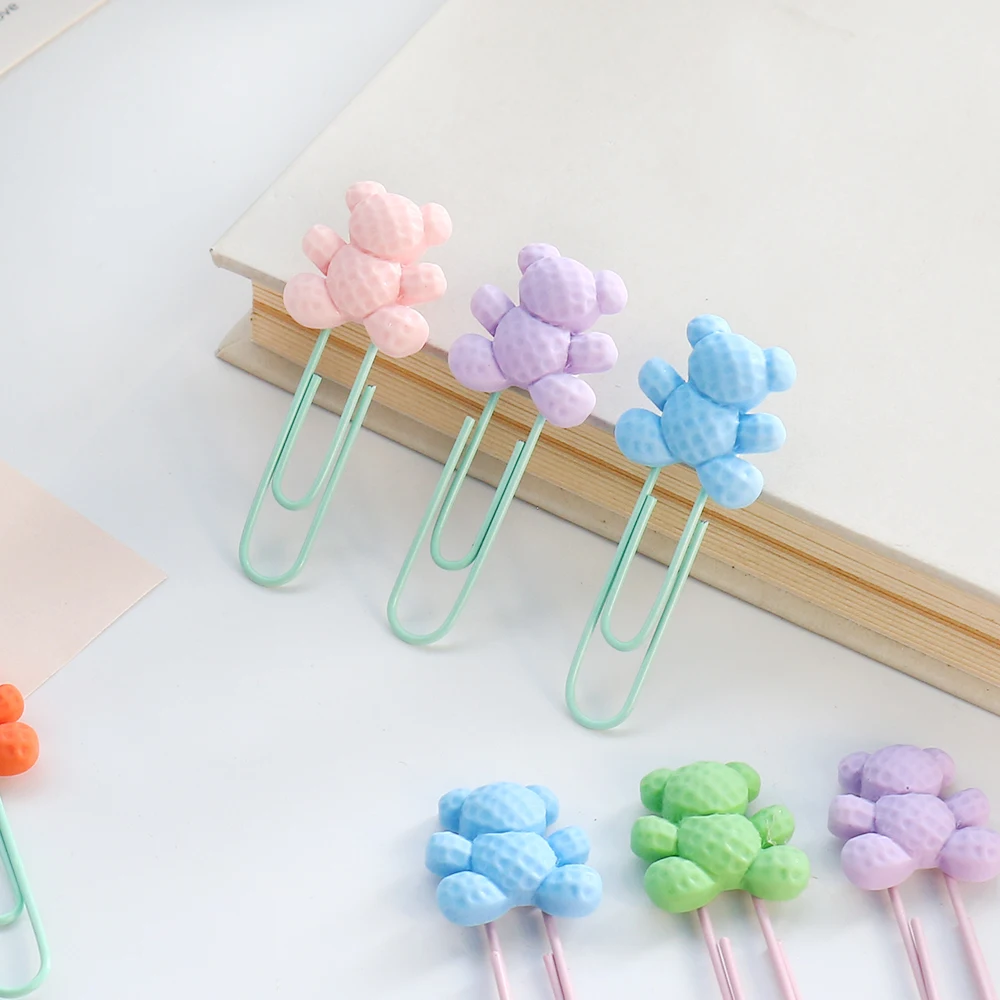 7 pièces/lot Kawaii ours coloré trombone décoratif signet classeur fichier Clips école bureau papeterie accessoires