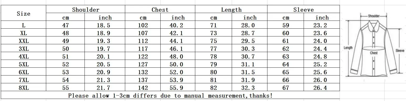 Size: L,XL,XXL,XXXL,4XL,5XL,6XL,7XL,8XL