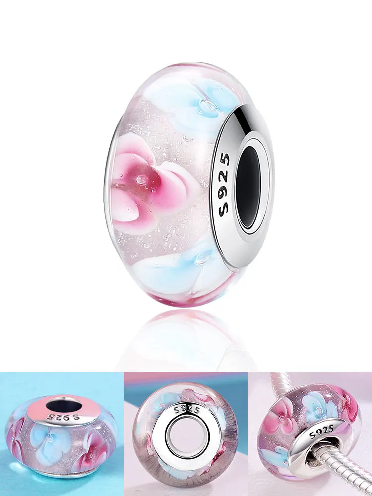 BAMOER 925 en argent Sterling belle fleur rose perles de charme en verre de Murano européen