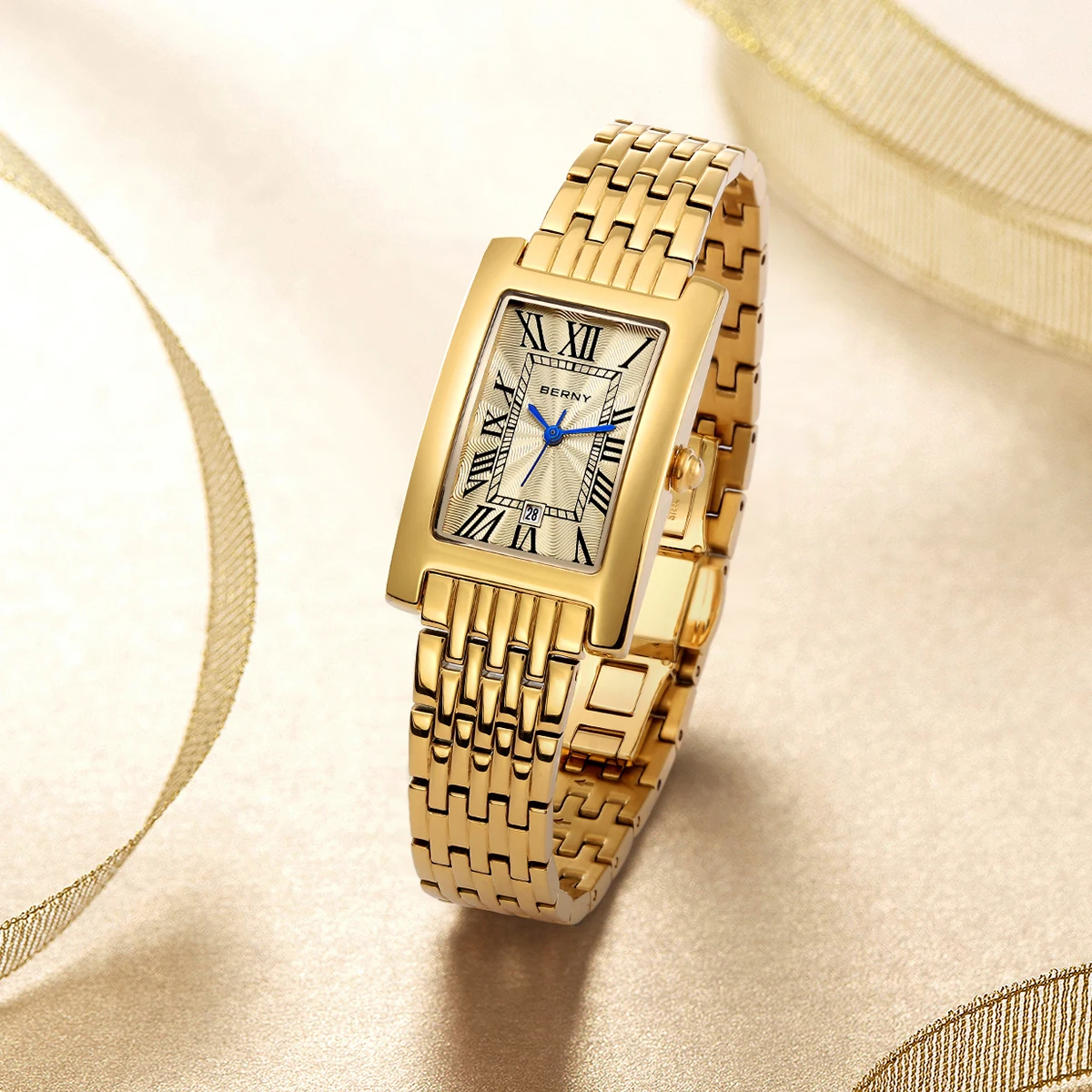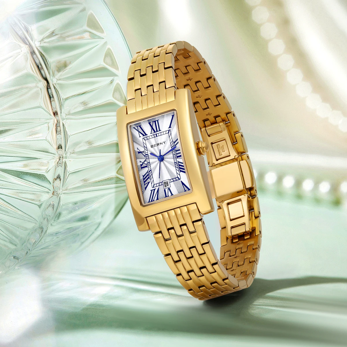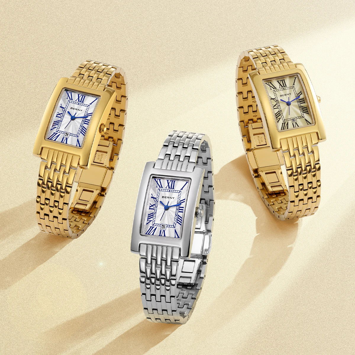 BERNY montre carrée pour femmes Quartz mode dames montre-bracelet saphir luxe chiffre romain Date décontracté Rectangle femmes montres
