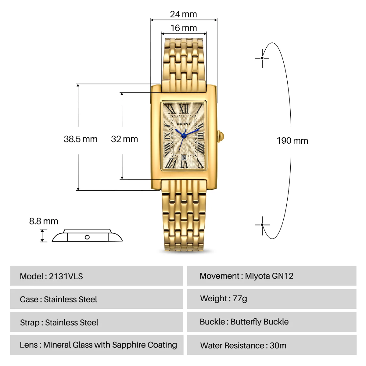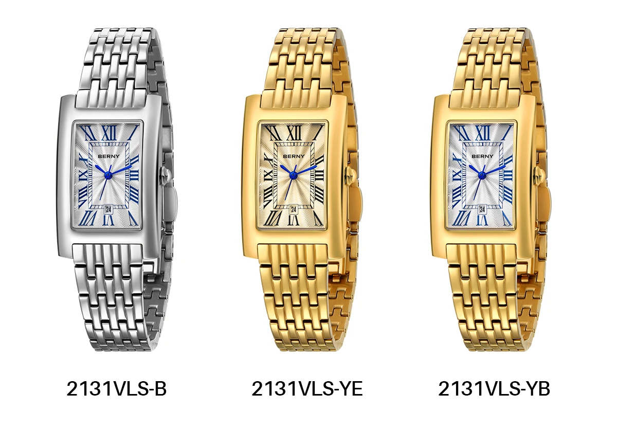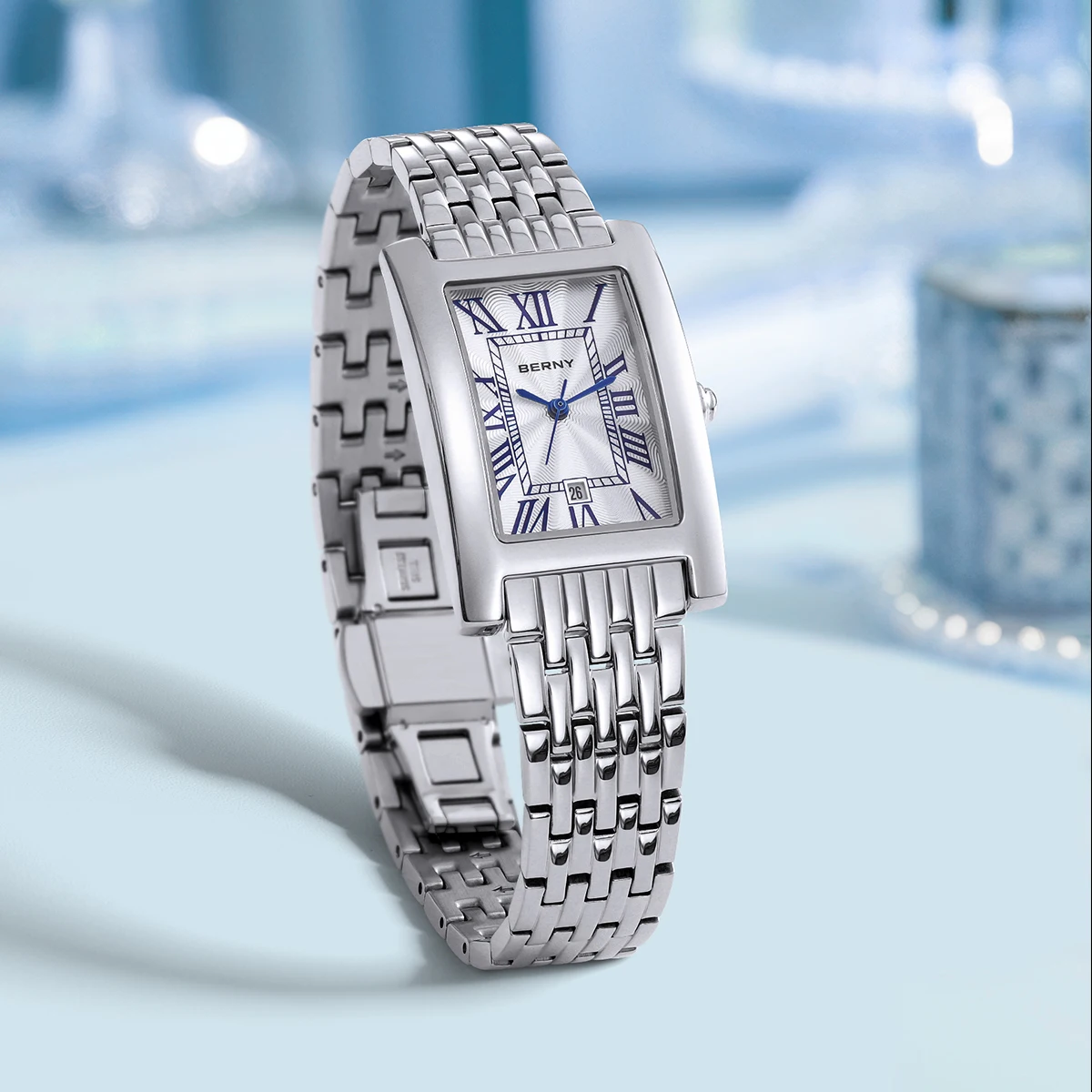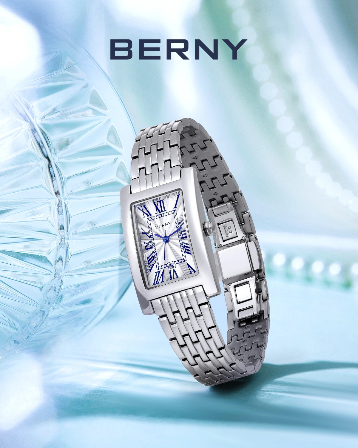 BERNY montre carrée pour femmes Quartz mode dames montre-bracelet saphir luxe chiffre romain Date décontracté Rectangle femmes montres