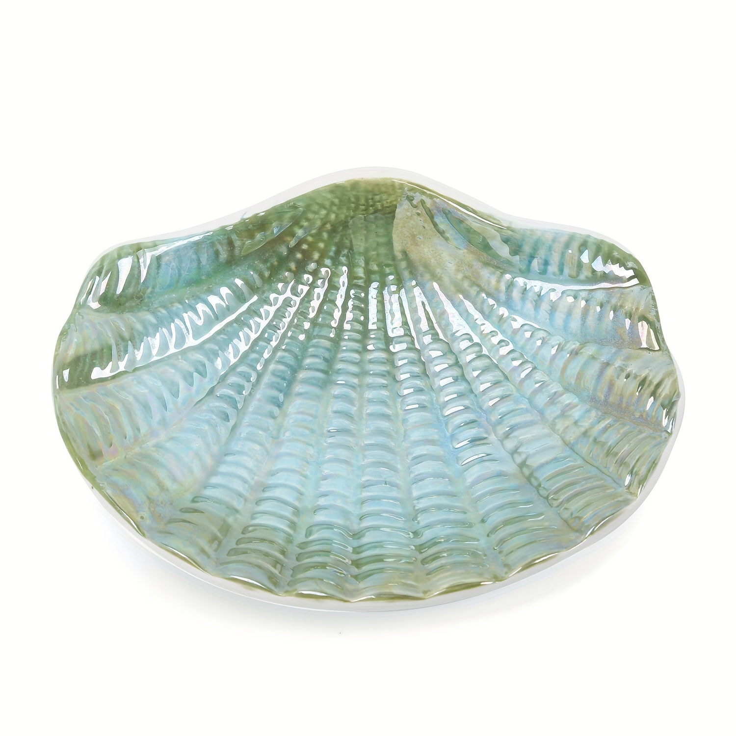 Blue & White Ceramic Ocean Seashell Soap Dish - Elegant Oval Design with Intricate Glossy Finish, Perfect for Bathroom, Tub, and Kitchen Sink, Bathroom Accessories | Decorative Soap Dish | Iridescent Ceramic, Soap Bar Holder