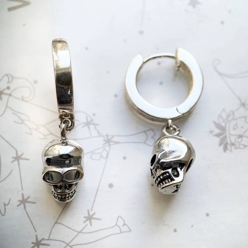 À charnière, cerceau, boucles d'oreilles, crâne, marque, nouveau, cadeau, 925, sterling, argent, Europe, style, tendance, fin, bijoux, femmes, hommes