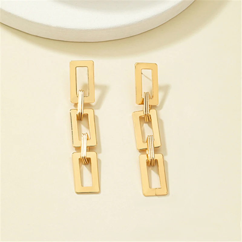 Boucles d'oreilles longues en métal pour femmes, Vintage, creux doré, géométrique, rectangulaire,