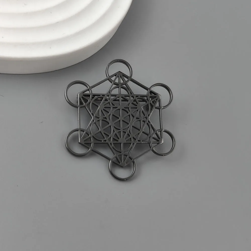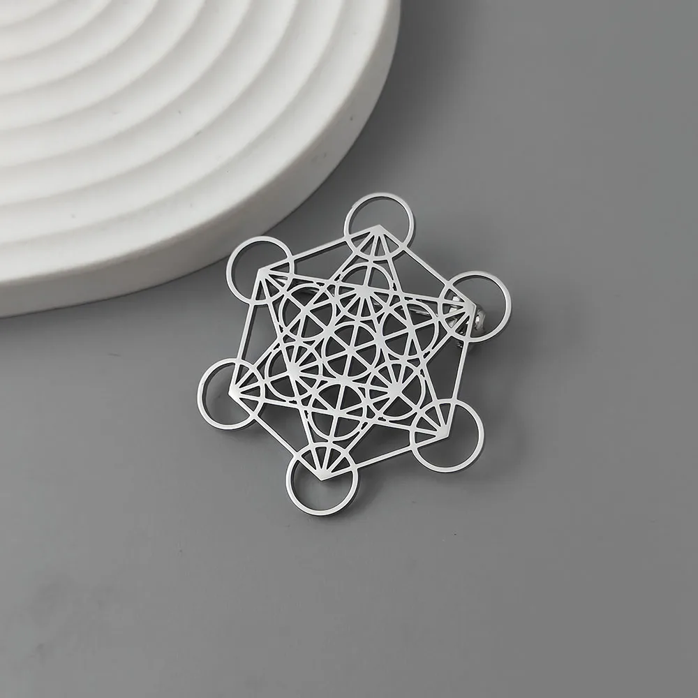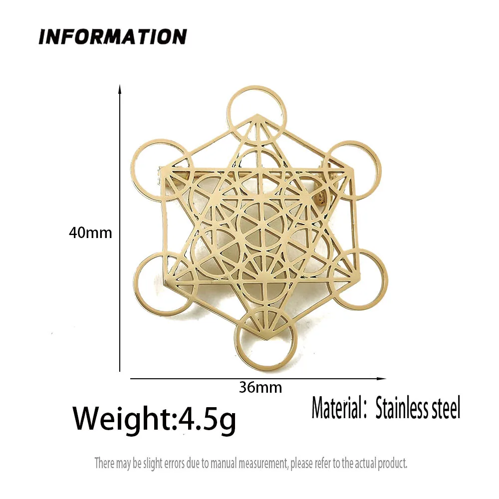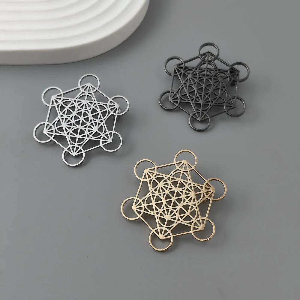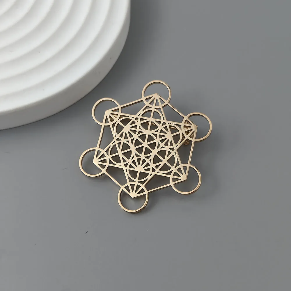 Broche Metatron creuse en acier inoxydable plaqué or 18 carats,