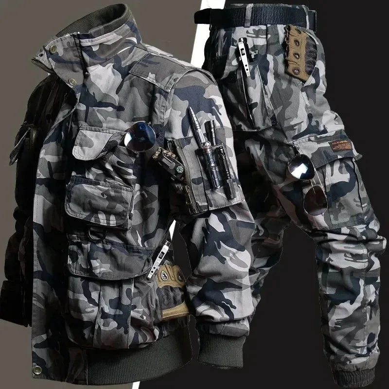 CamSolomon-Ensemble veste et pantalon cargo multi-poches pour homme, résistant à l'usure, coupe-vent, imbibé, entraînement en plein air, chasse, nouveau, 2 pièces