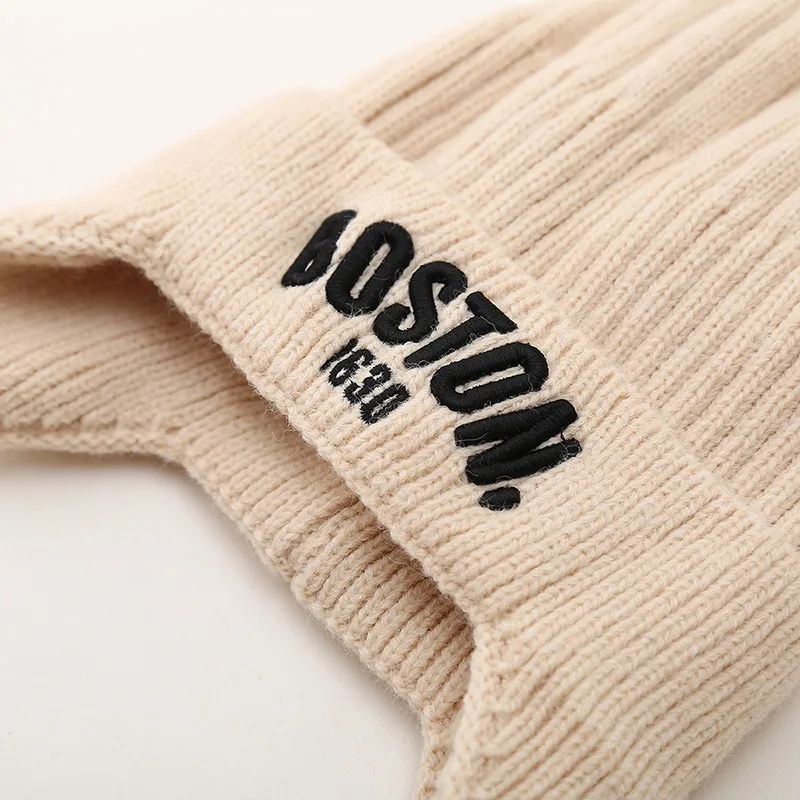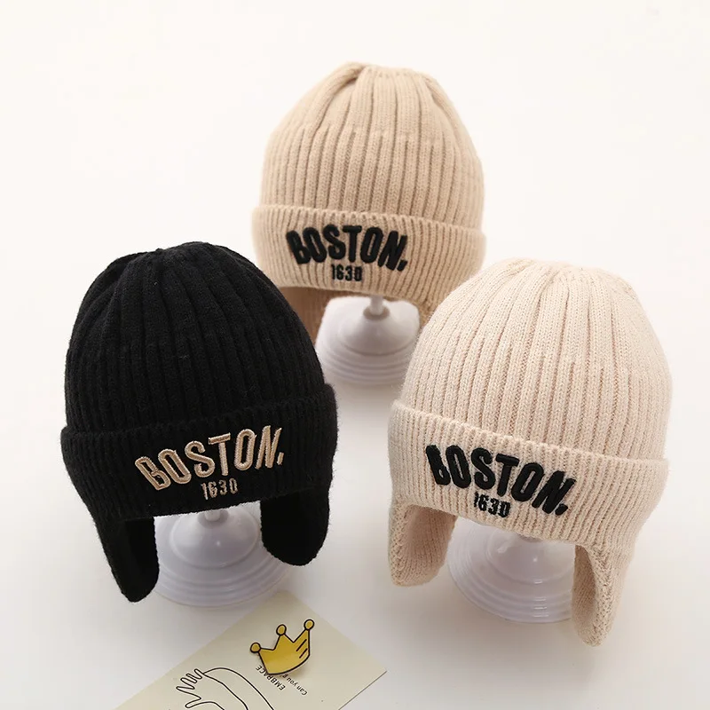 Chapeau en laine avec cache-oreilles brodé pour bébé, bonnet pour tout-petit, protection des oreilles pour enfants, lettre, document solide, chaud, hiver