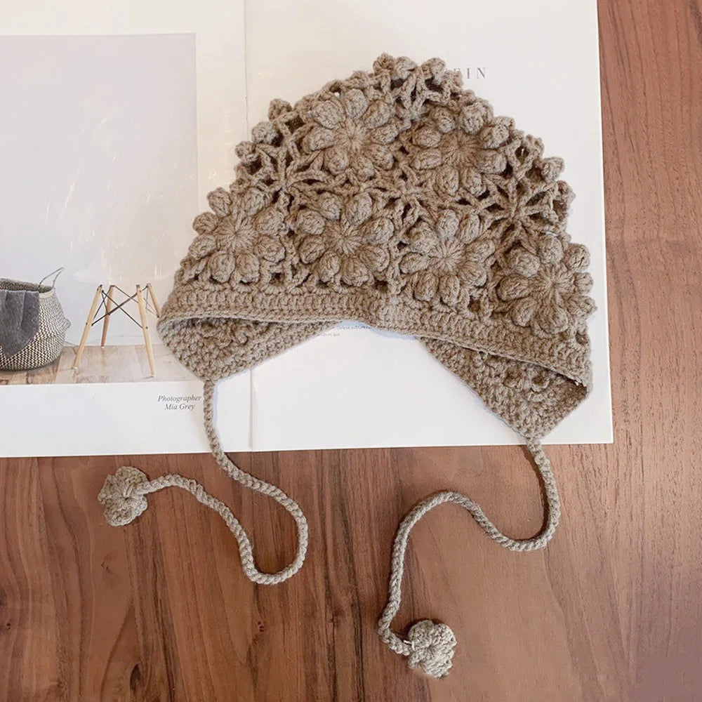 Chapeau respirant fait à la main pour enfants, crânes au crochet à fleurs creuses, style bohème, béret polyvalent, casquette pour enfants, filles