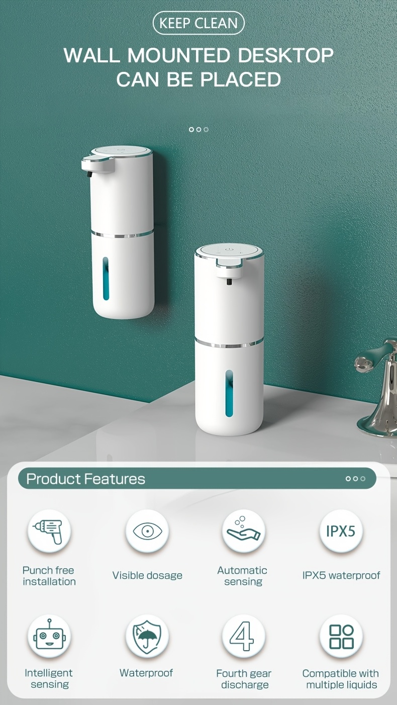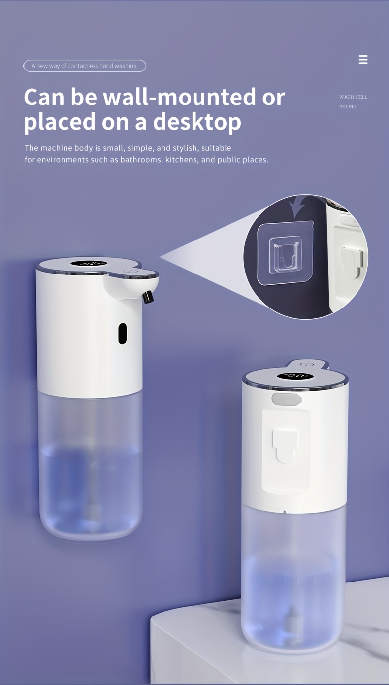 Charging Automatic Soap Dispenser, 380ml, Wall-Mounted, -Friendly, with Lithium Battery, USB Charging, Automatic Sensor, for Kitchen Detergent, Bathroom, Shampoo, Conditioner, Body Was