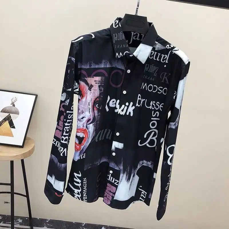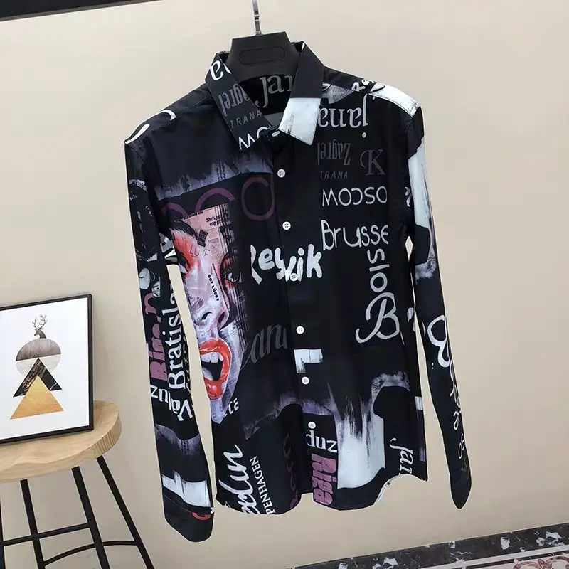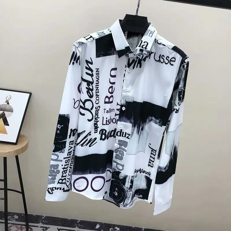 Chemise à manches longues à col rabattu pour hommes, cardigan boutonné High Street, impression de lettres, mode décontractée, printemps, automne, nouveau
