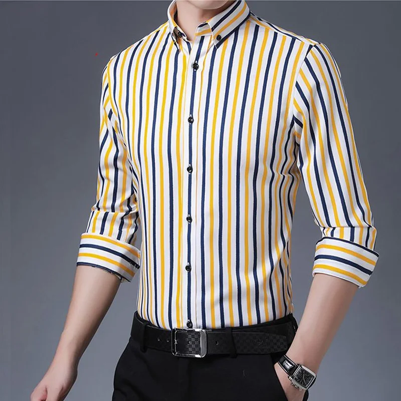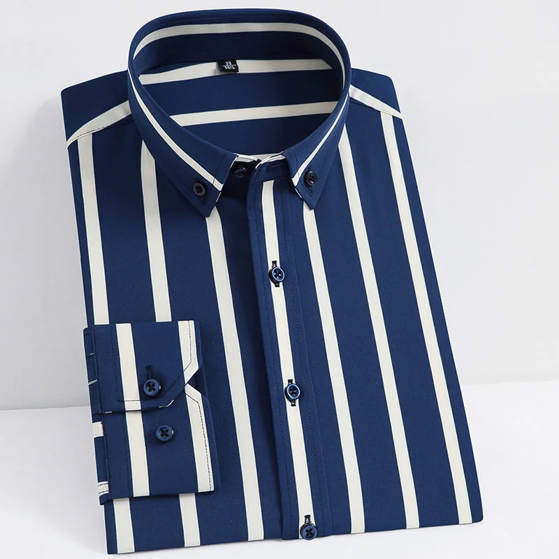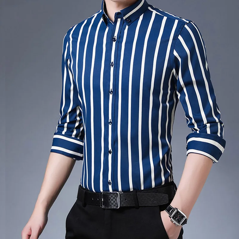 Chemise à manches longues à rayures pour hommes, coupe couvertes, col rabattu, affaires décontractées, tendance de la mode, édition coréenne, printemps, automne, nouveau, 2024