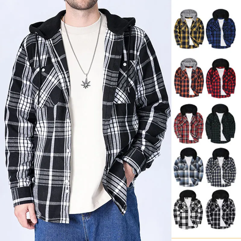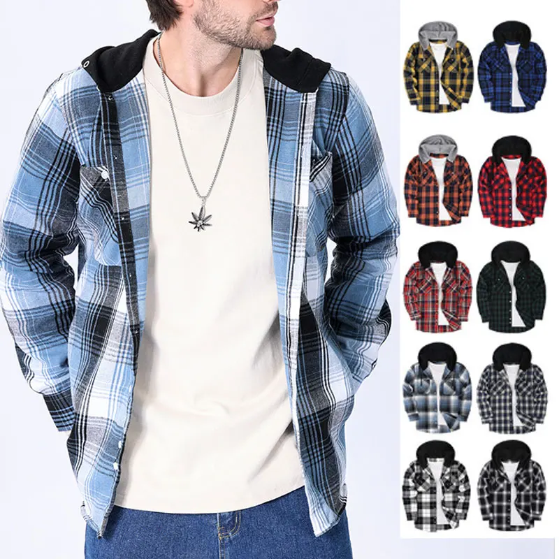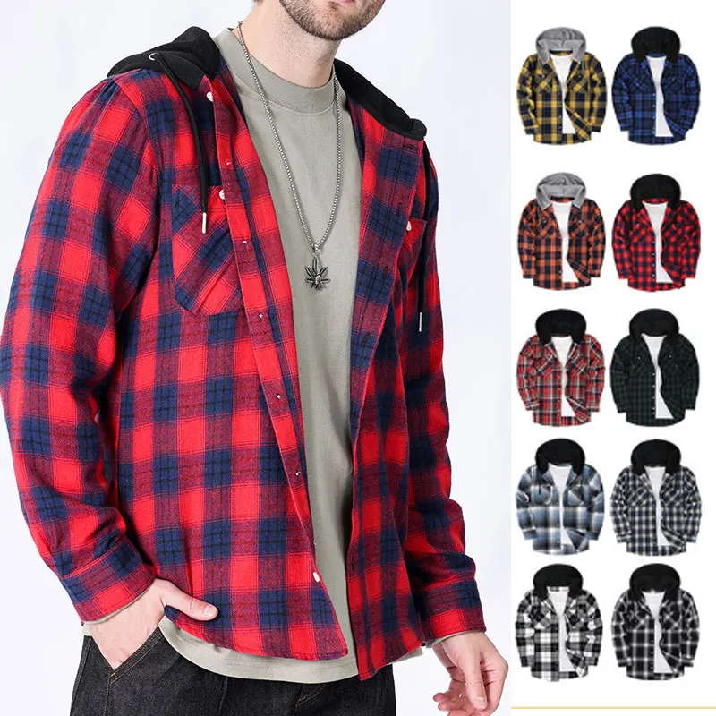 Chemise à manches longues en flanelle pour hommes, manteau à carreaux, décontracté, non repassage, grande taille, chapeau, mode, printemps, automne, nouveau, taille américaine