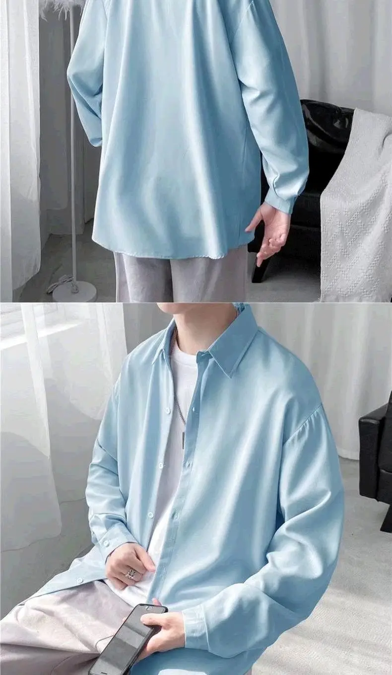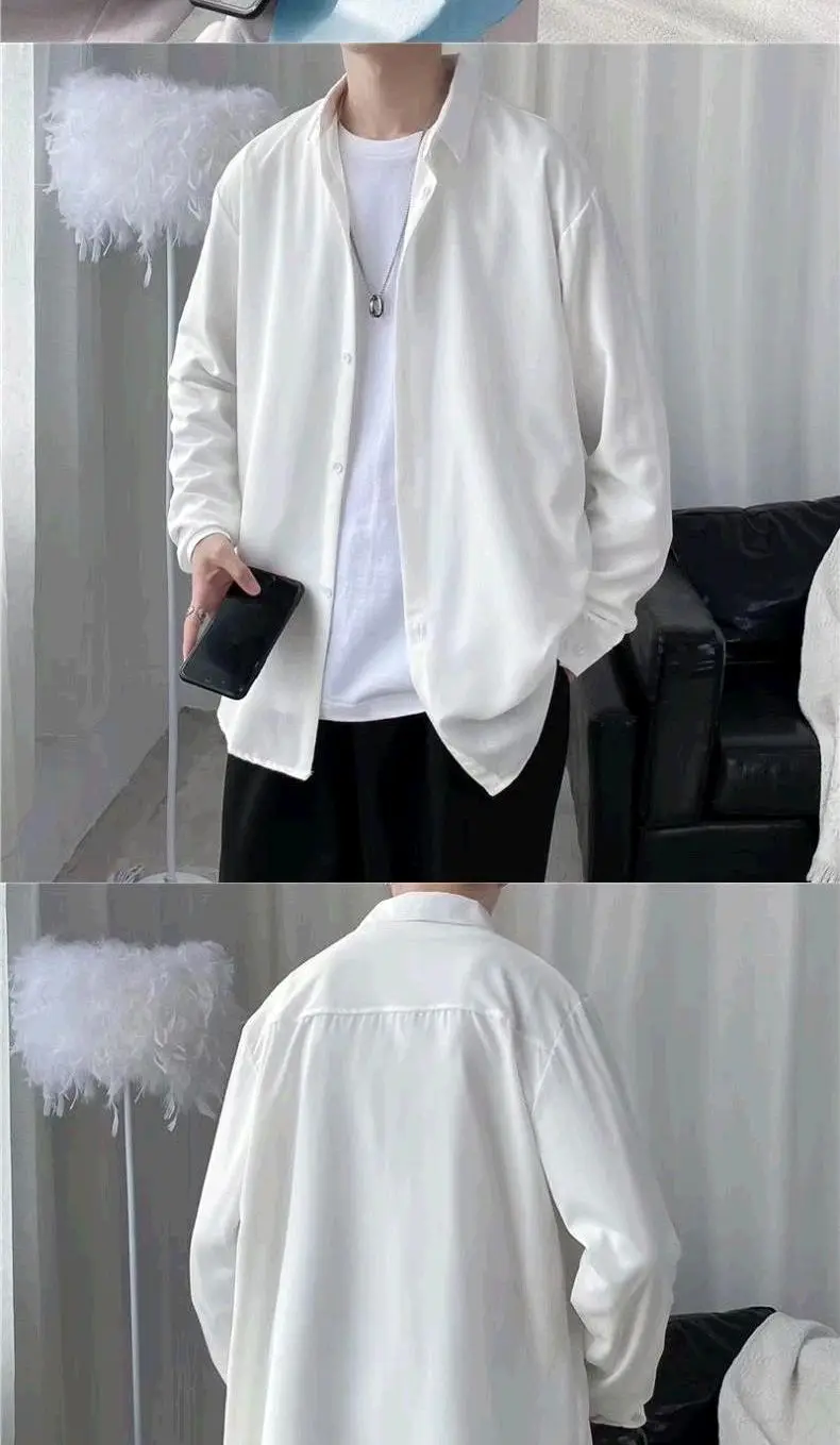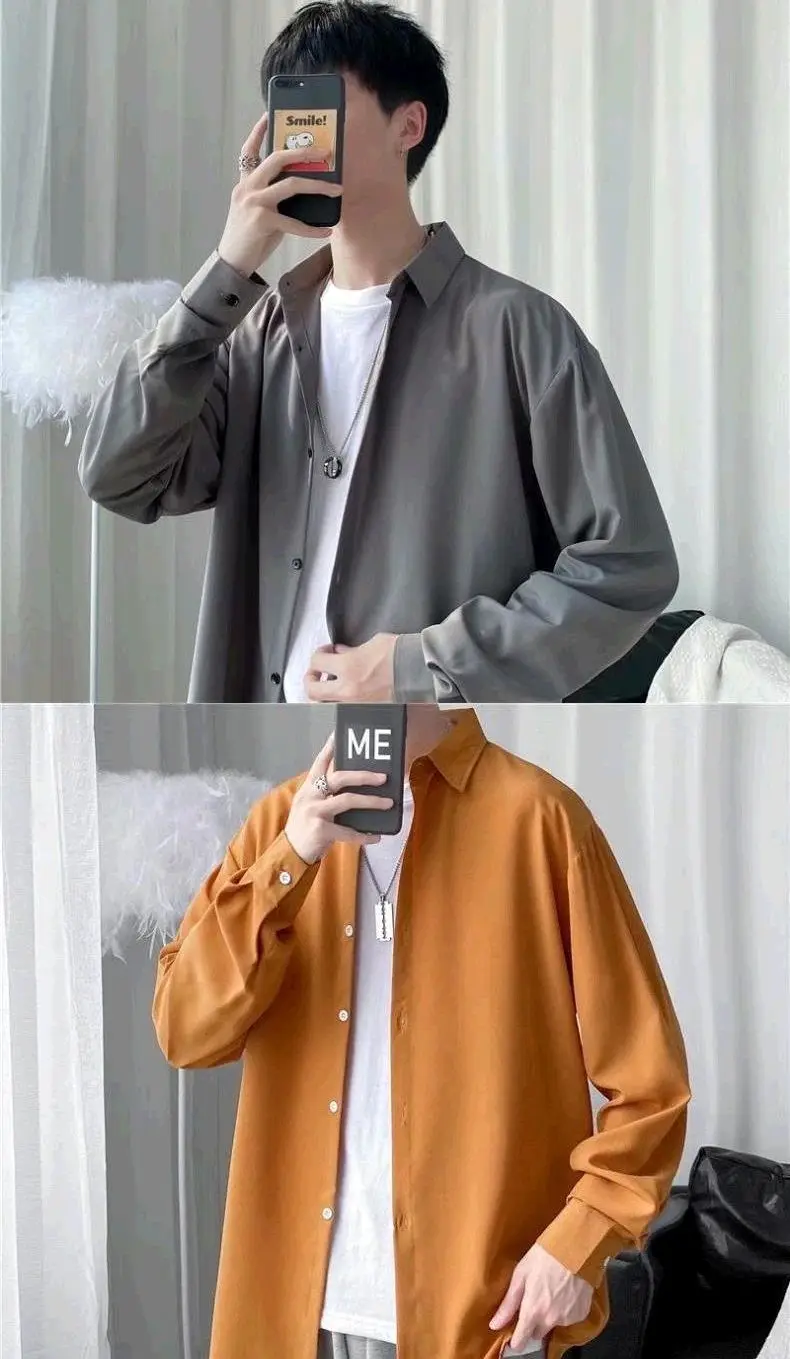 Chemise décontractée de style Hong Kong pour hommes, haut minimaliste, col rabattable, document solide, léger, printemps, été, 2024