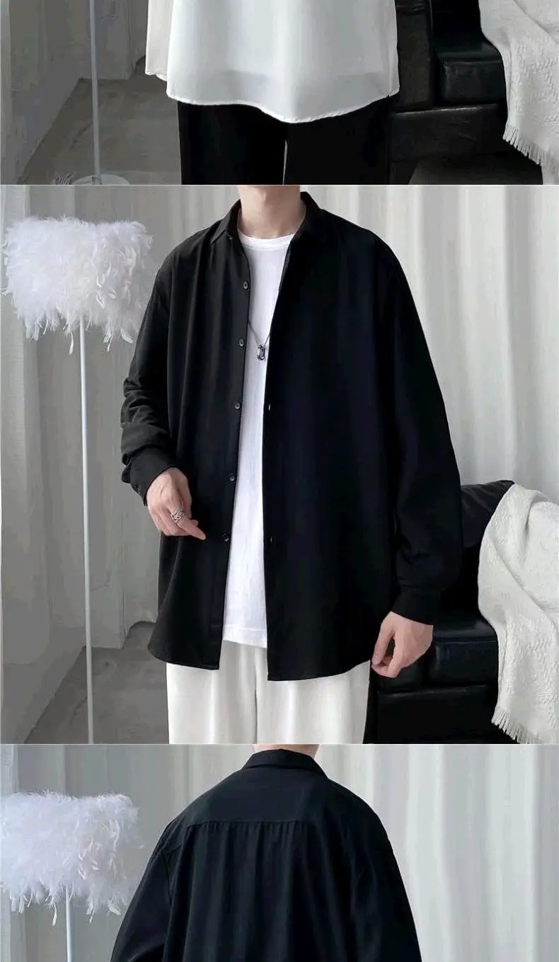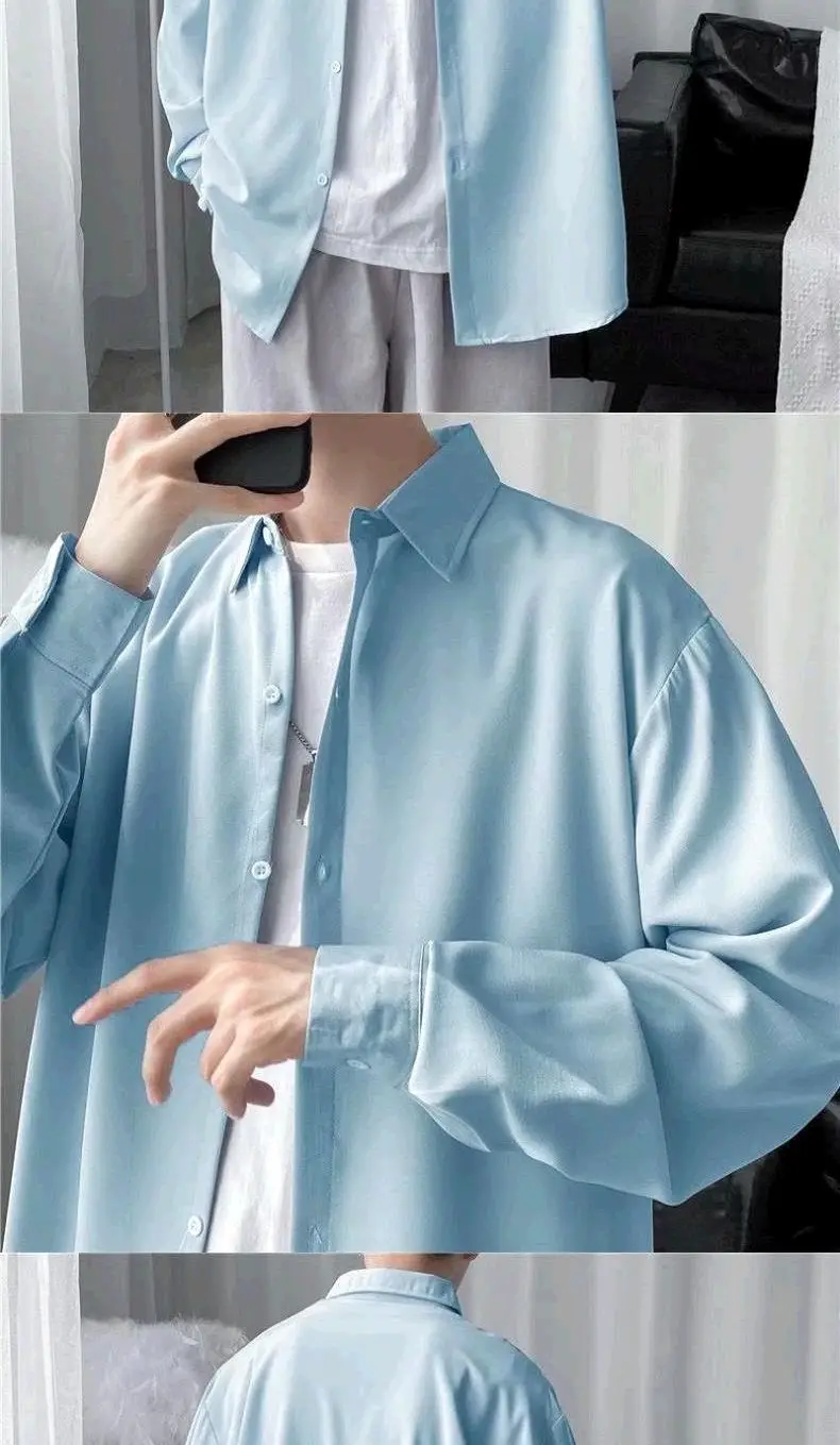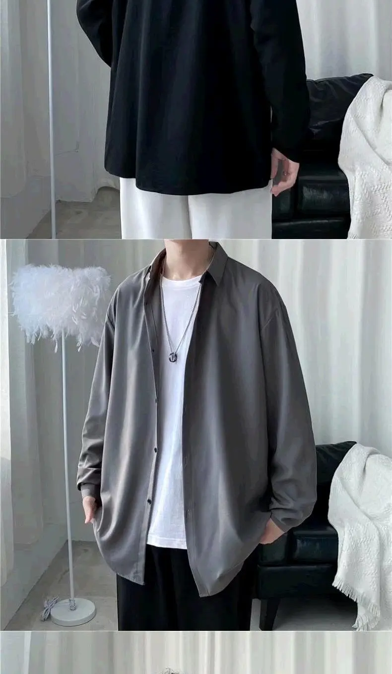 Chemise décontractée de style Hong Kong pour hommes, haut minimaliste, col rabattable, document solide, léger, printemps, été, 2024