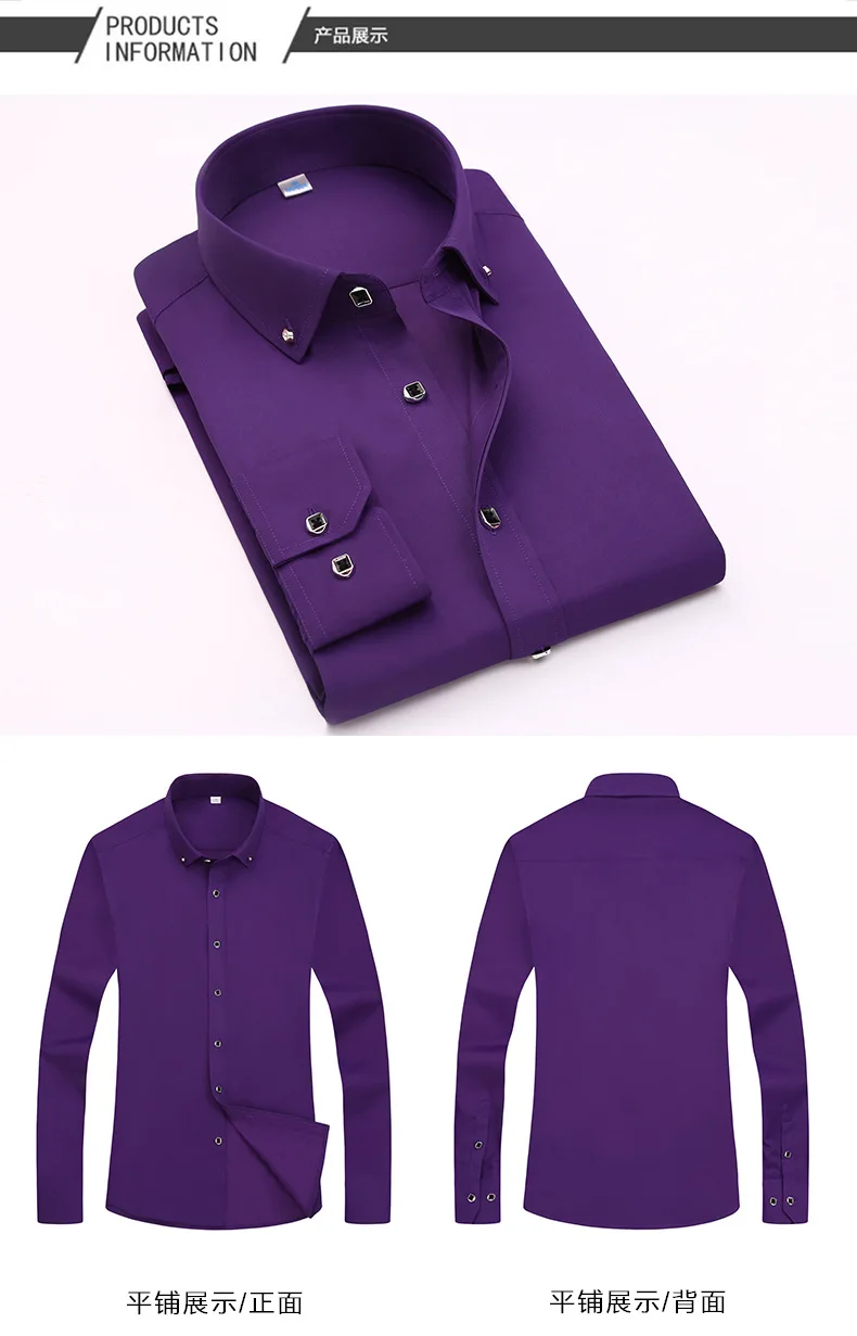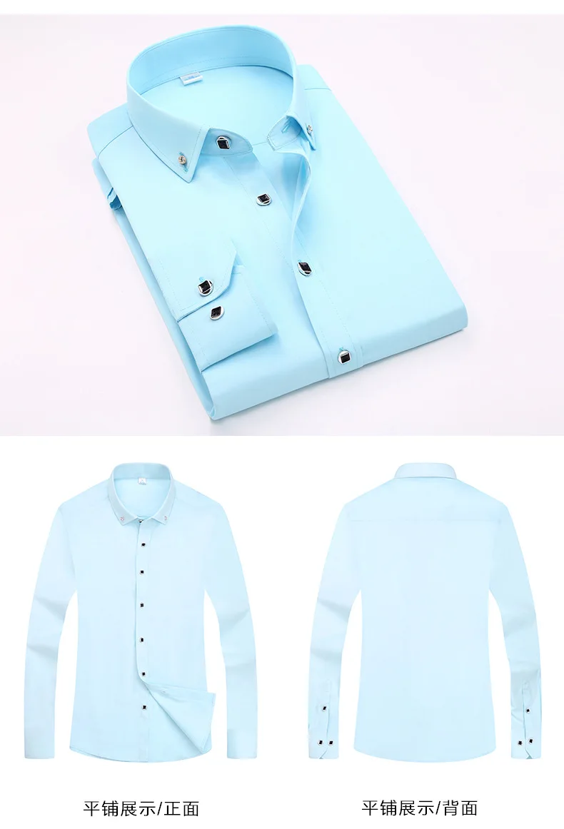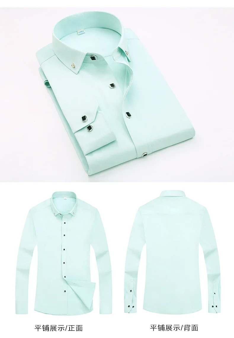 Chemise habillée de luxe pour hommes, bouton en diamant, couleur unie, décontractée, coupe Standard, confortable, douce, manches longues, vêtements pour hommes