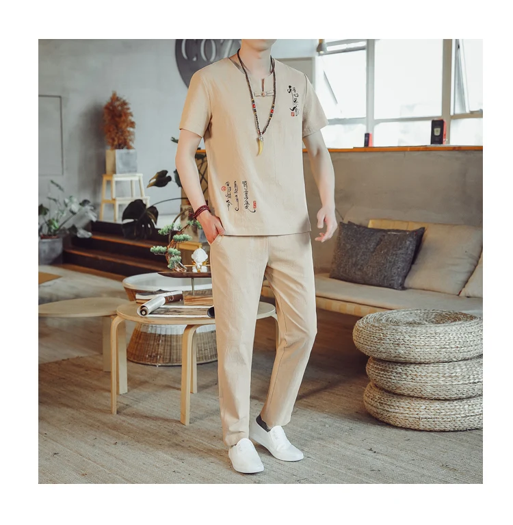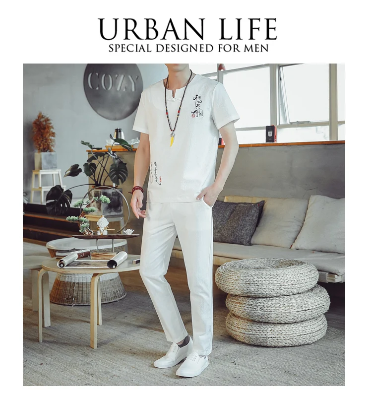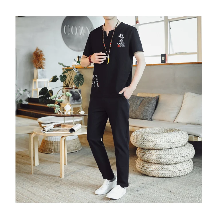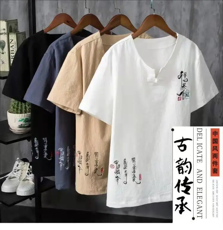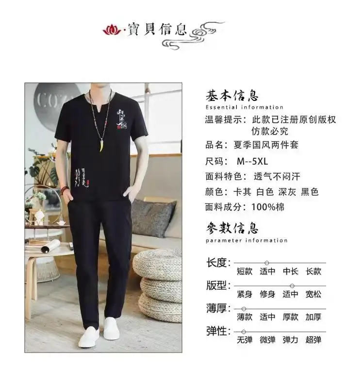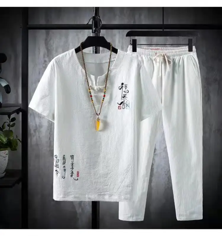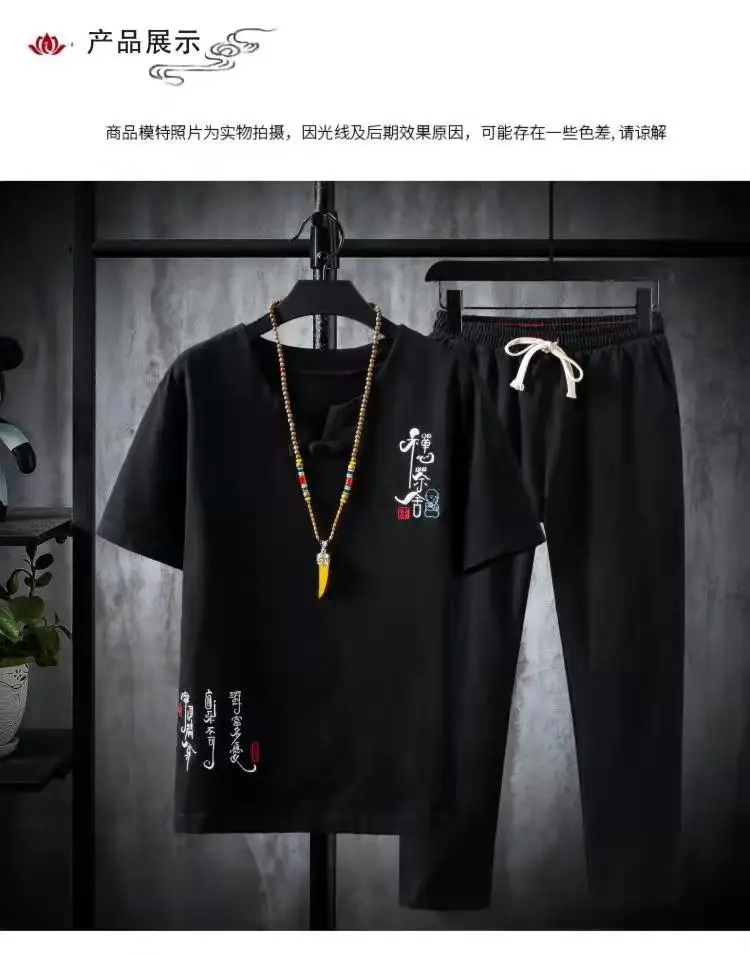 (Chemise + pantalon) 2024 été nouveau style mode hommes chemise à manches courtes chemises hommes ensembles chemises en coton mâle deux pièces M-5XL