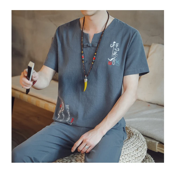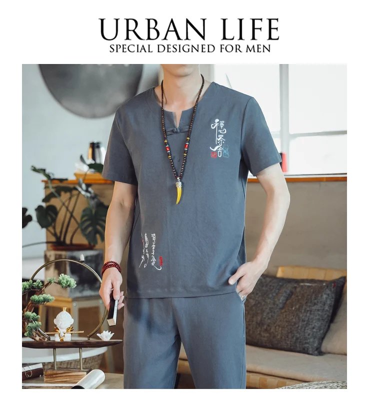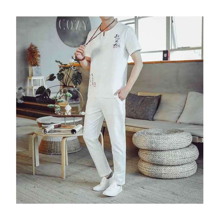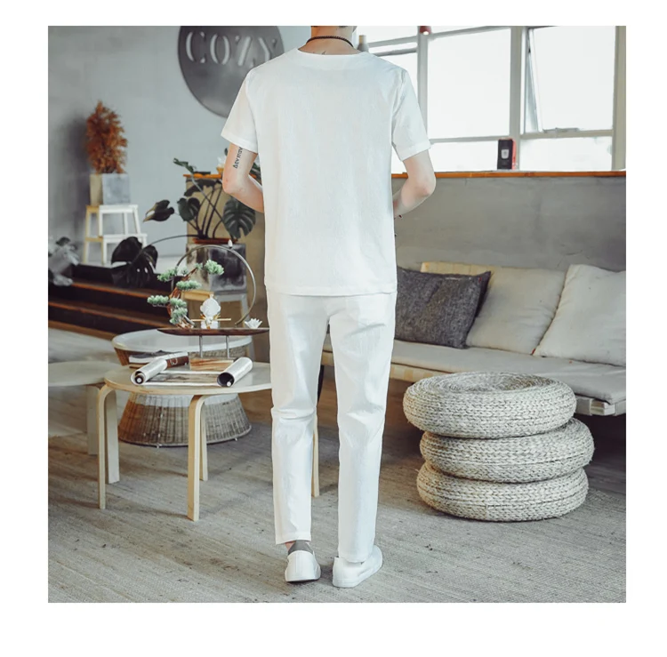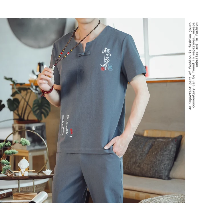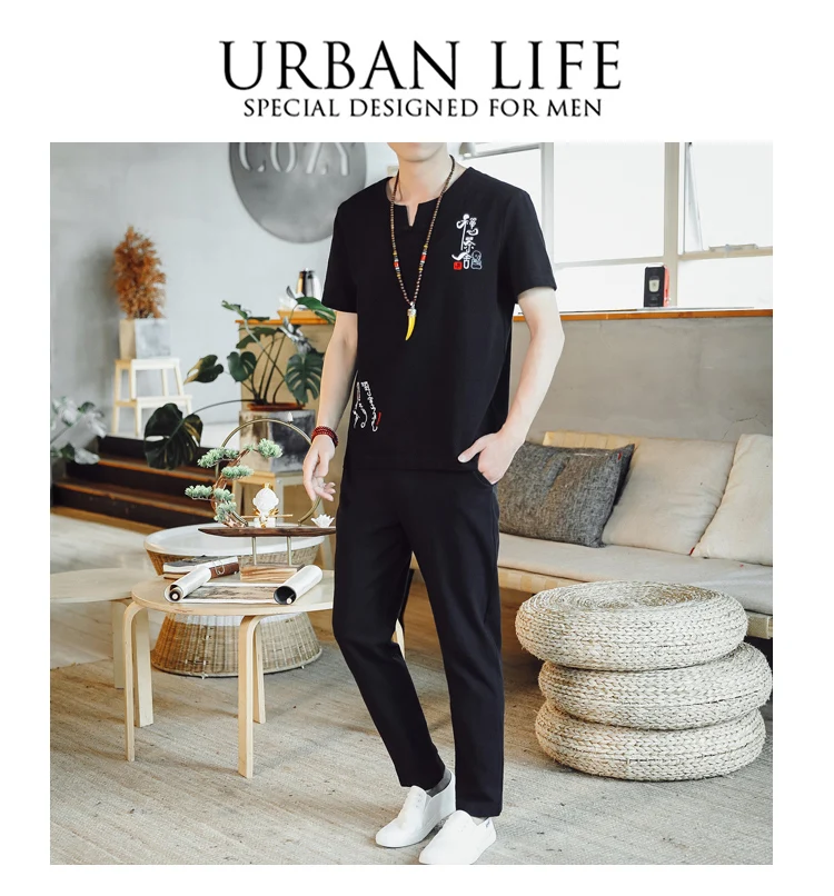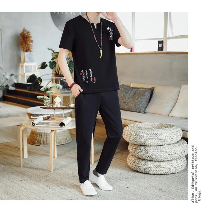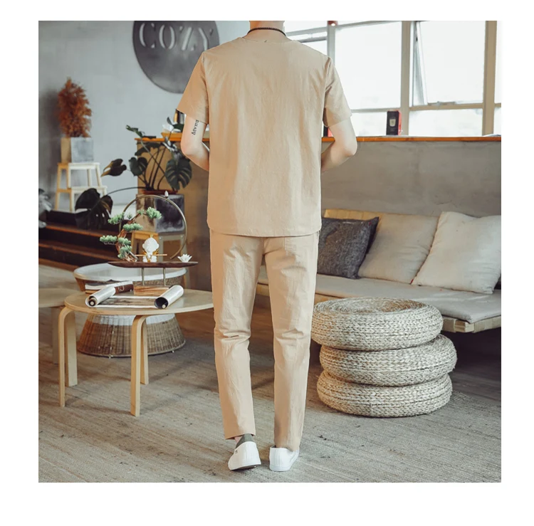 (Chemise + pantalon) 2024 été nouveau style mode hommes chemise à manches courtes chemises hommes ensembles chemises en coton mâle deux pièces M-5XL