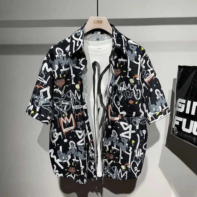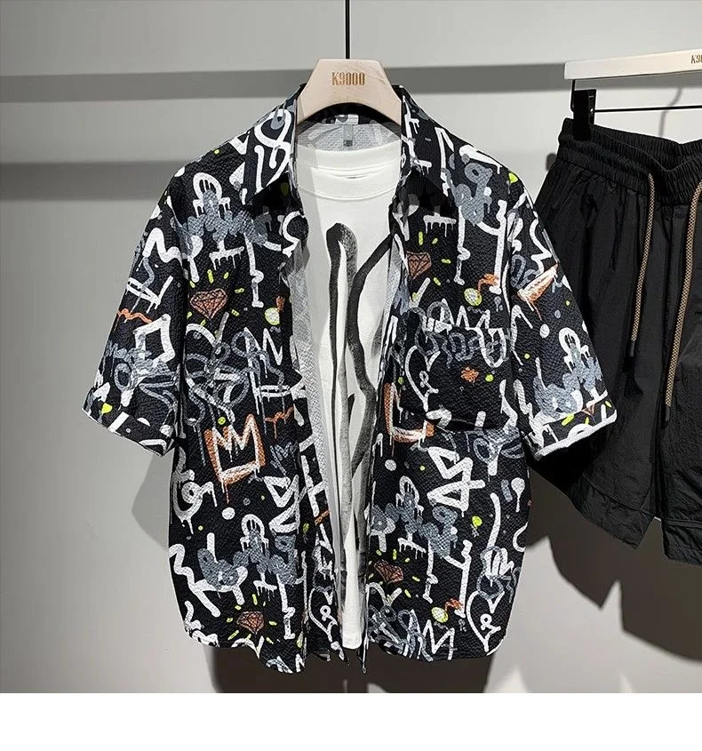 Chemises à col à revers pour hommes, impression de loisirs, couleurs durables, ajustement adt, graffiti créatif, rue, tendance de la mode estivale, 2024