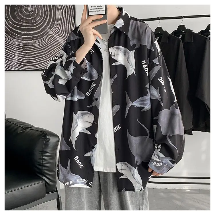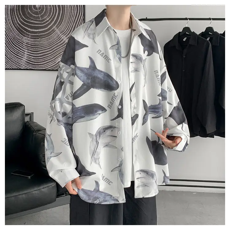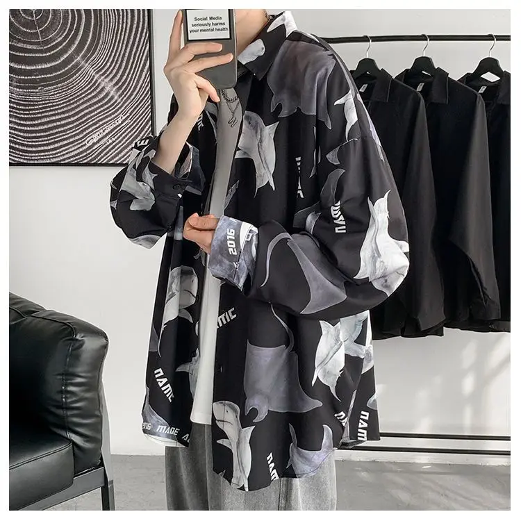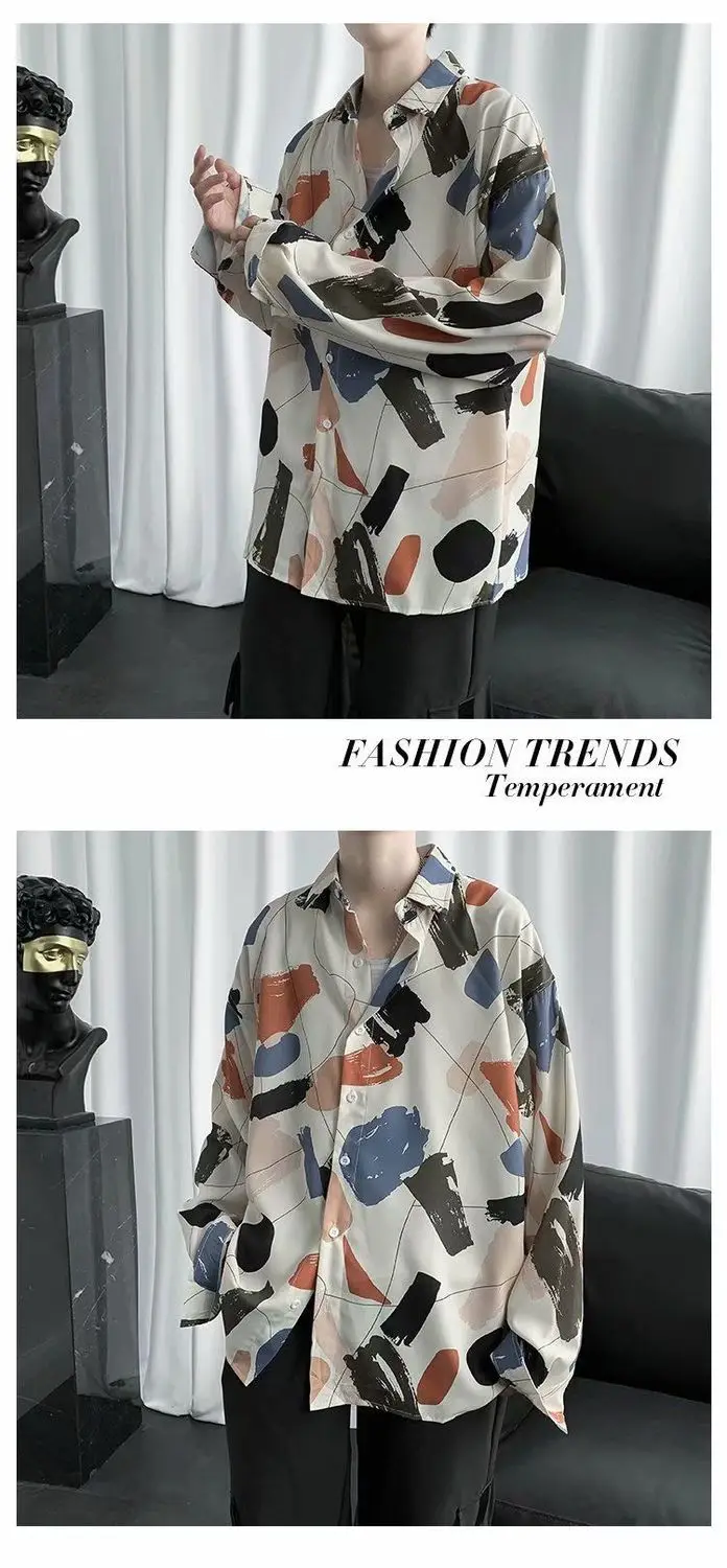 Chemises à col rabattu à manches longues pour hommes, impression Aadt, beau printemps, mode d'été mince, streetwear décontracté, vêtements à boutons