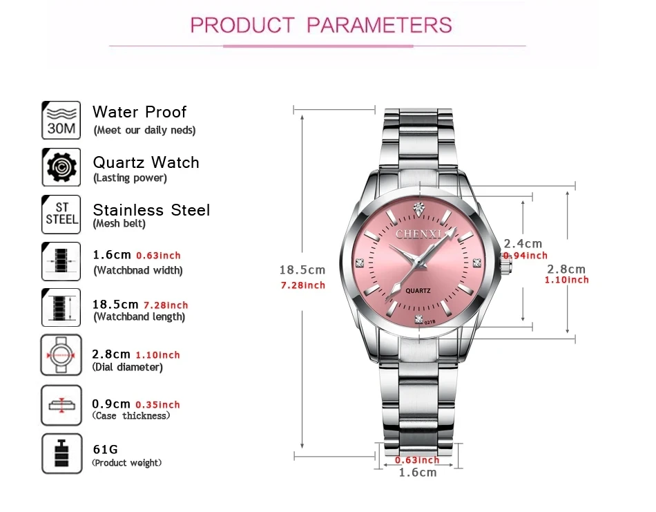 CHENXI 021B montre à Quartz pour femmes mode élégante étanche bracelet en acier inoxydable