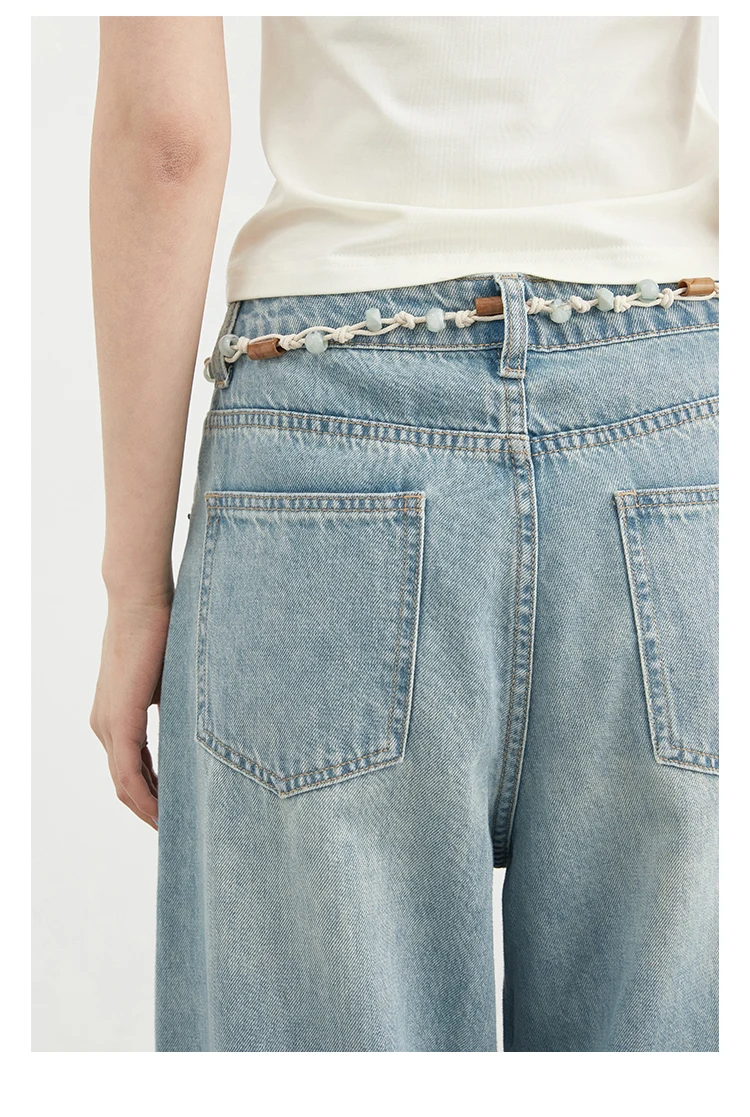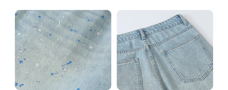 CHIC VEN femmes Denim pantalon décontracté nouveau taille haute Original éclaboussé encre point jambe droite jean jambe large pantalon été 2025