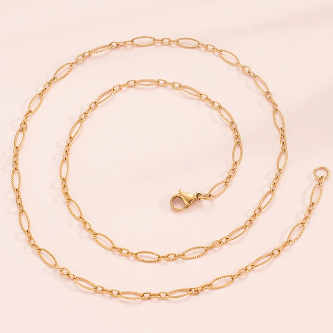 Collier Figaro O JONecklace en acier inoxydable gaufré SION L pour hommes et femmes,