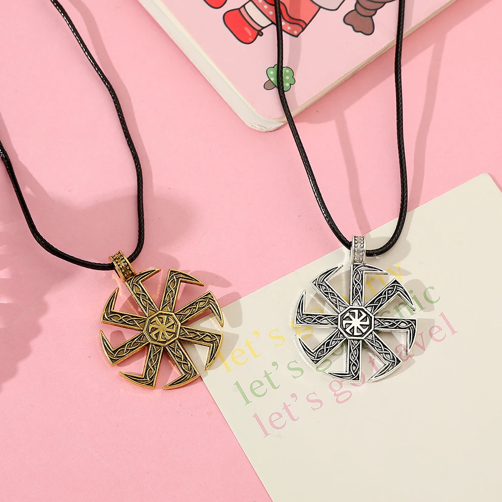 Collier symbole Kolovrat slave pour hommes, roue solaire païenne, Talisman, amulette, chaîne à maillons, pendentif, bijoux religieux pour hommes