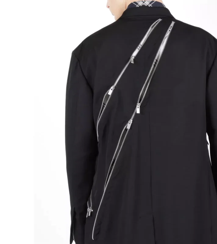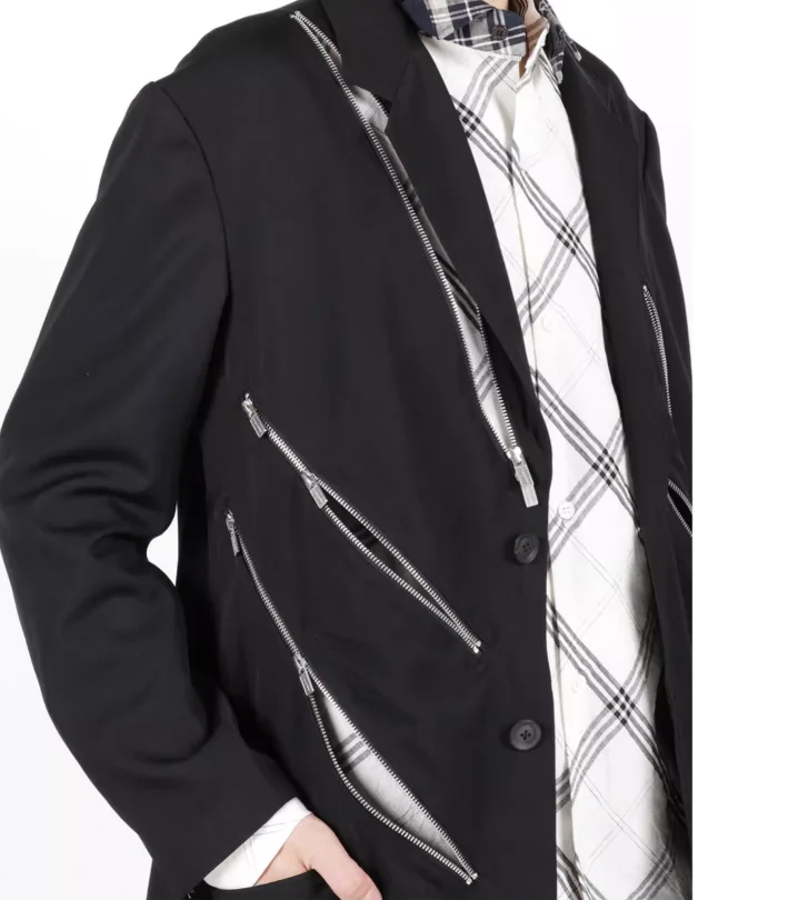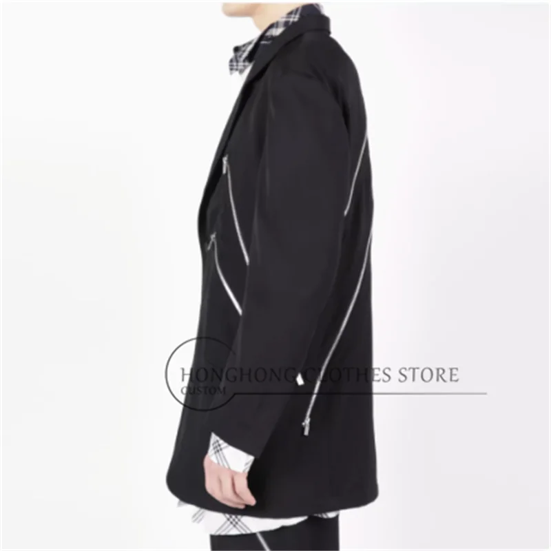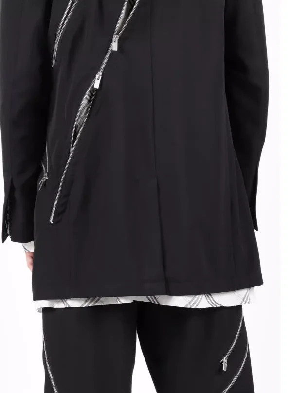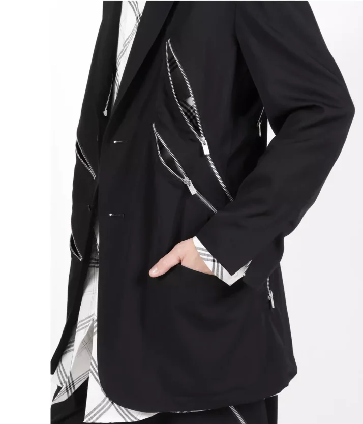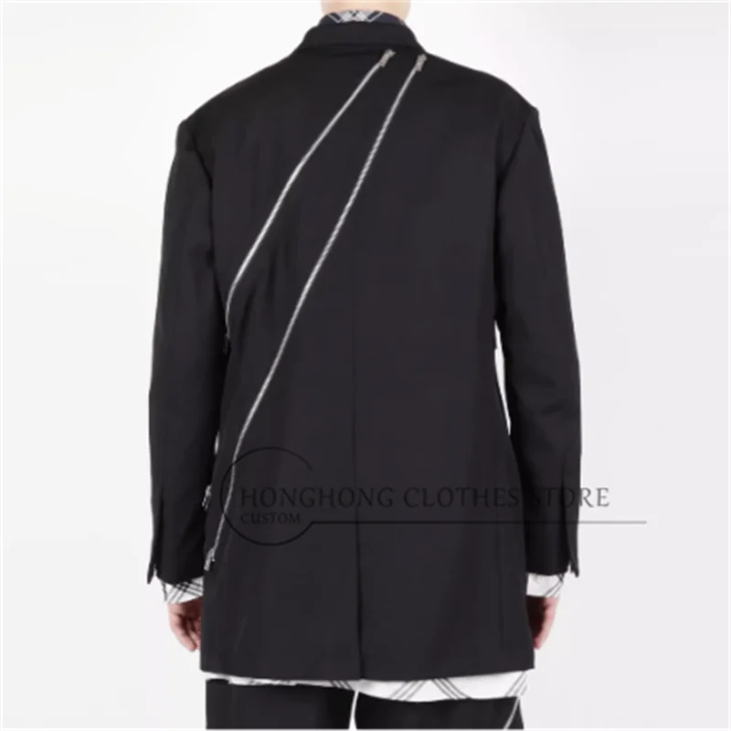 Combinaison noire décontractée à structure décorative avec fermeture éclair diagonale, design Original, nouvelle veste tendance de taille personnalisée 2025