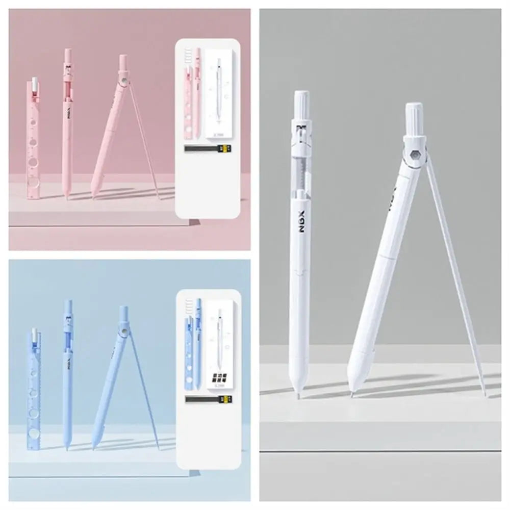 Contenu de l'emballage : 1 boussole de précision + 1 boîte de mine de crayon + 6 gommes + 1 * règle de dessin géométrique et artistique.La conception unique empêche le glissement pendant le dessin.