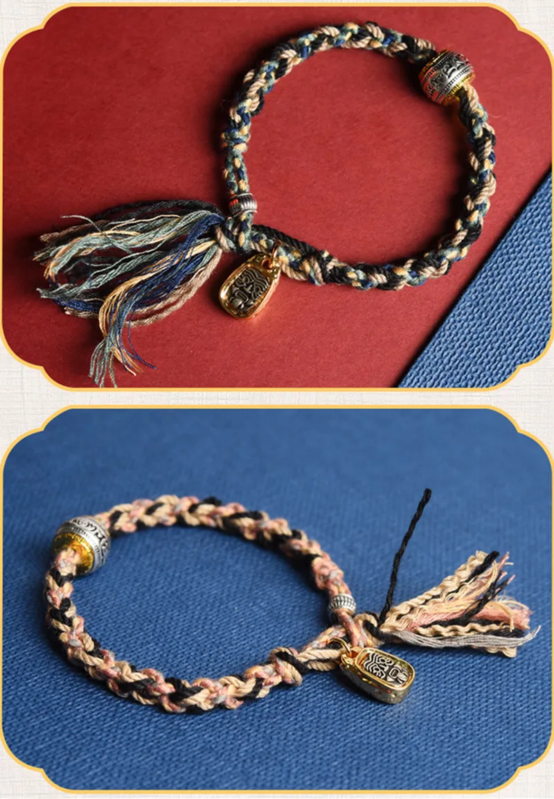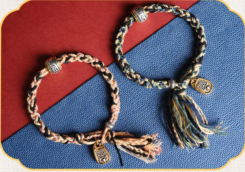 Corde sale tibétaine frottant à la main Bracelet en coton produit fini tissé à la main vent tibétain Zakiram Ga Wu boîte corde à main pour femmes