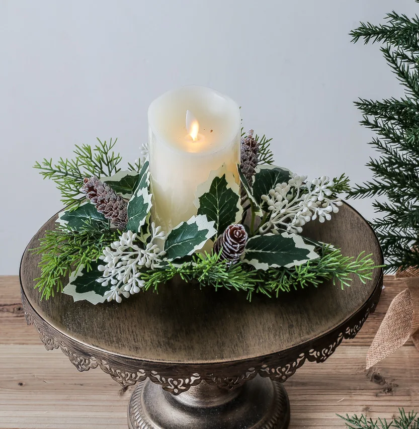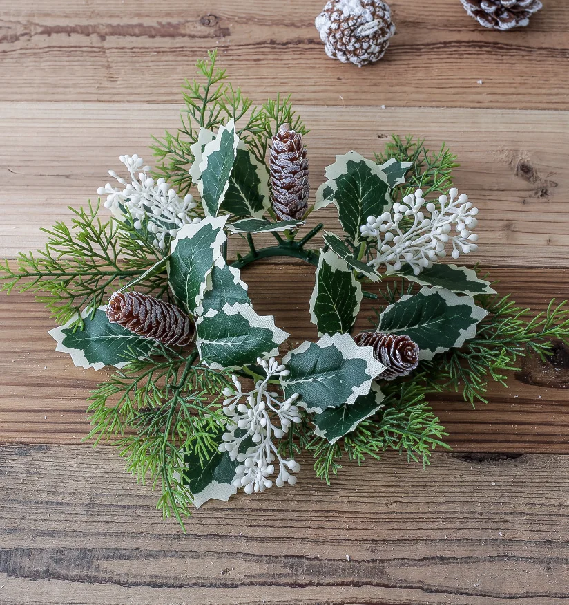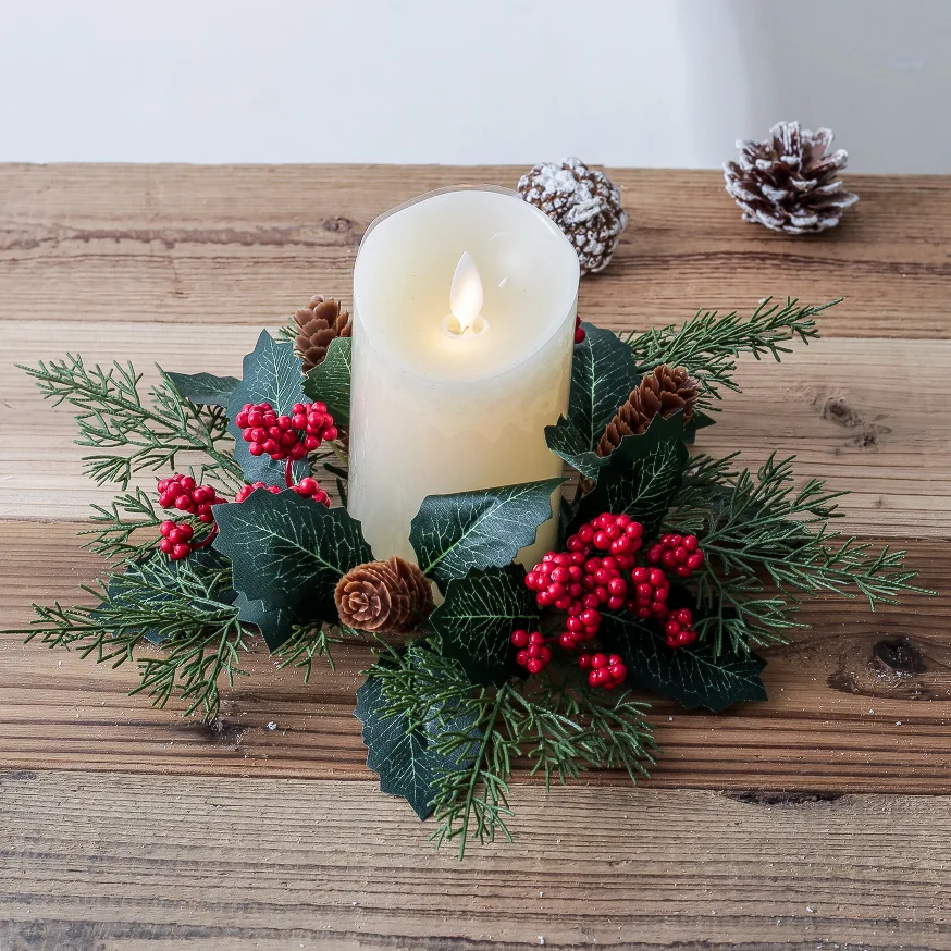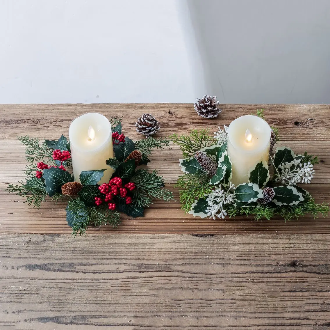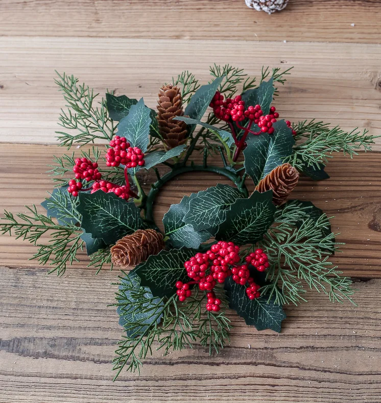 Couronne de fête de Noël, décoration du cuir chevelu ci-après, décor de table à la maison, feuille artificielle, anneau de bougie, guirxiété ci-après