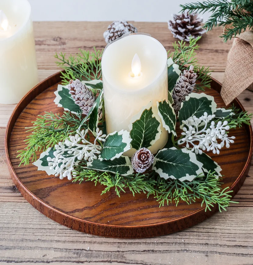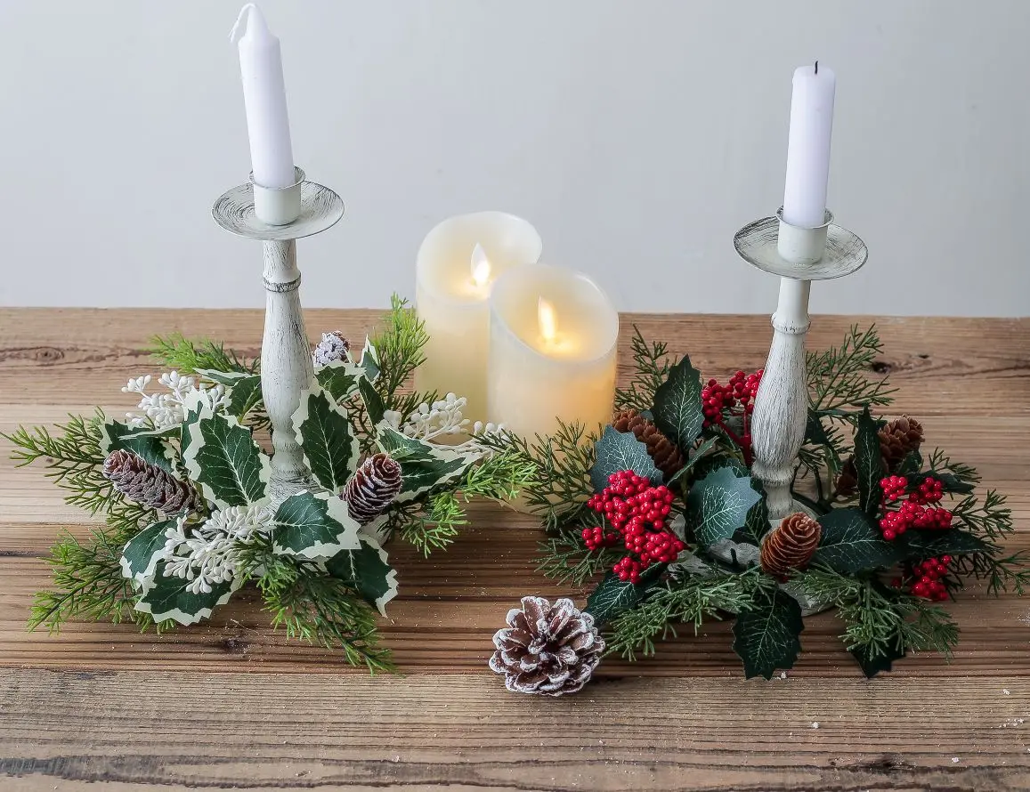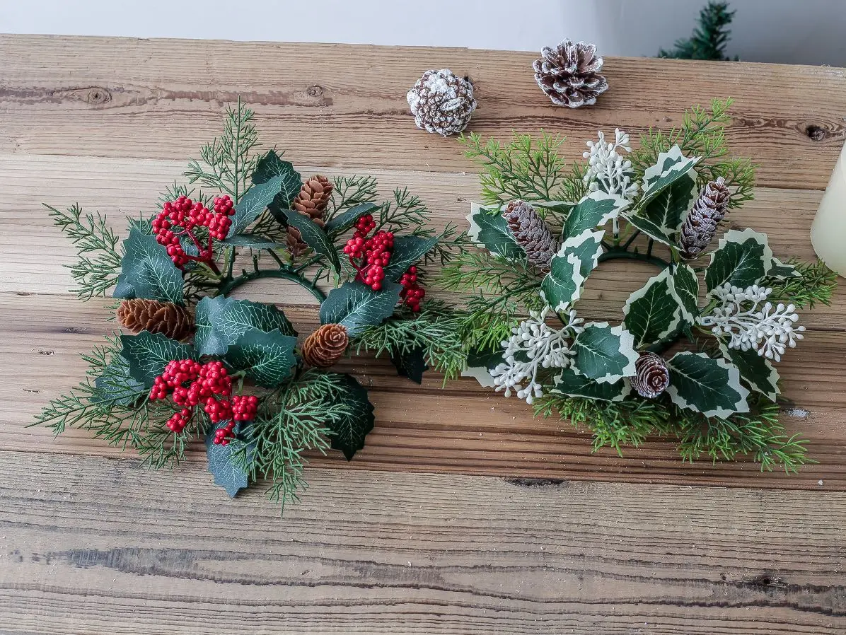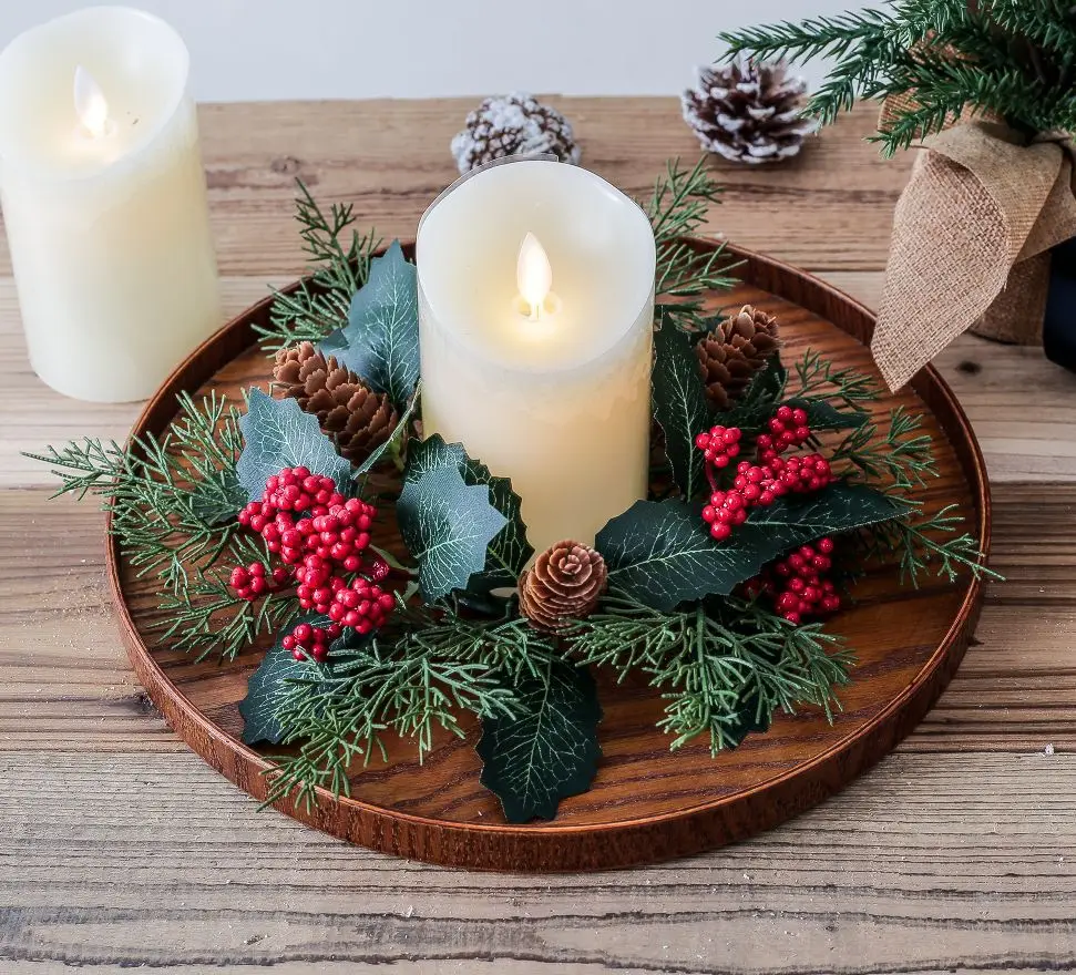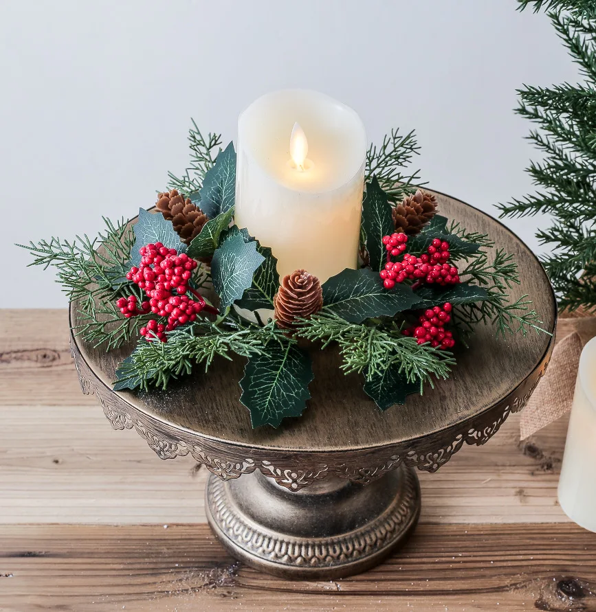 Couronne de fête de Noël, décoration du cuir chevelu ci-après, décor de table à la maison, feuille artificielle, anneau de bougie, guirxiété ci-après