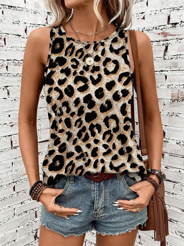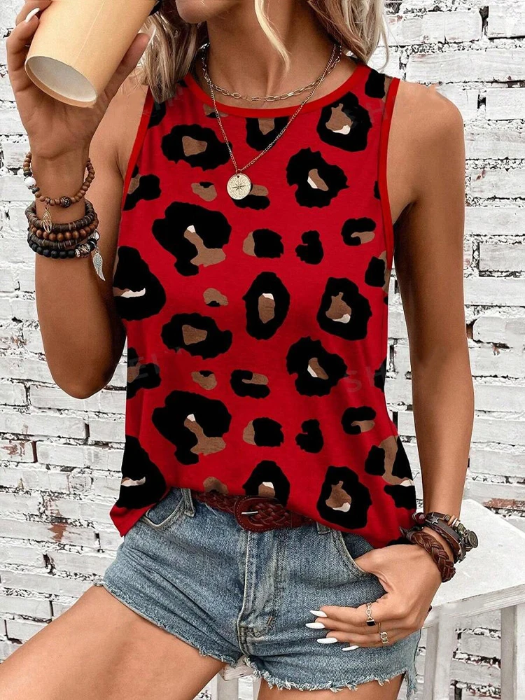 Débardeur d'été Sexy imprimé léopard en 3D pour femmes, mode col rond, gilet décontracté, épaules dénudées, Y2k, haut sans manches, Camisole, vêtements pour femmes