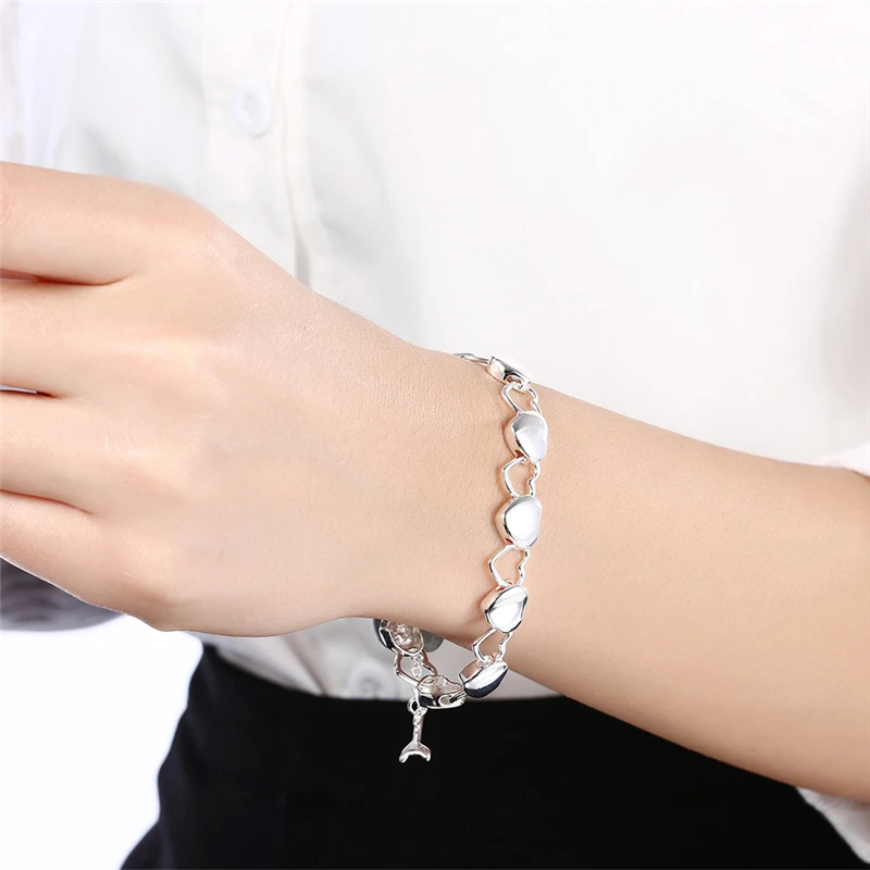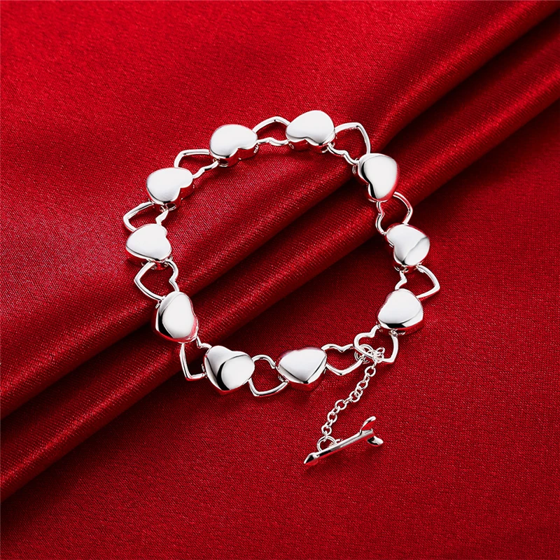 DOTEFFIL 925 en argent Sterling solide creux plein coeur Bracelet pour femme charme mariage fiançailles fête bijoux de mode