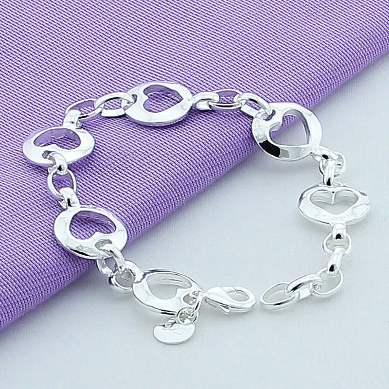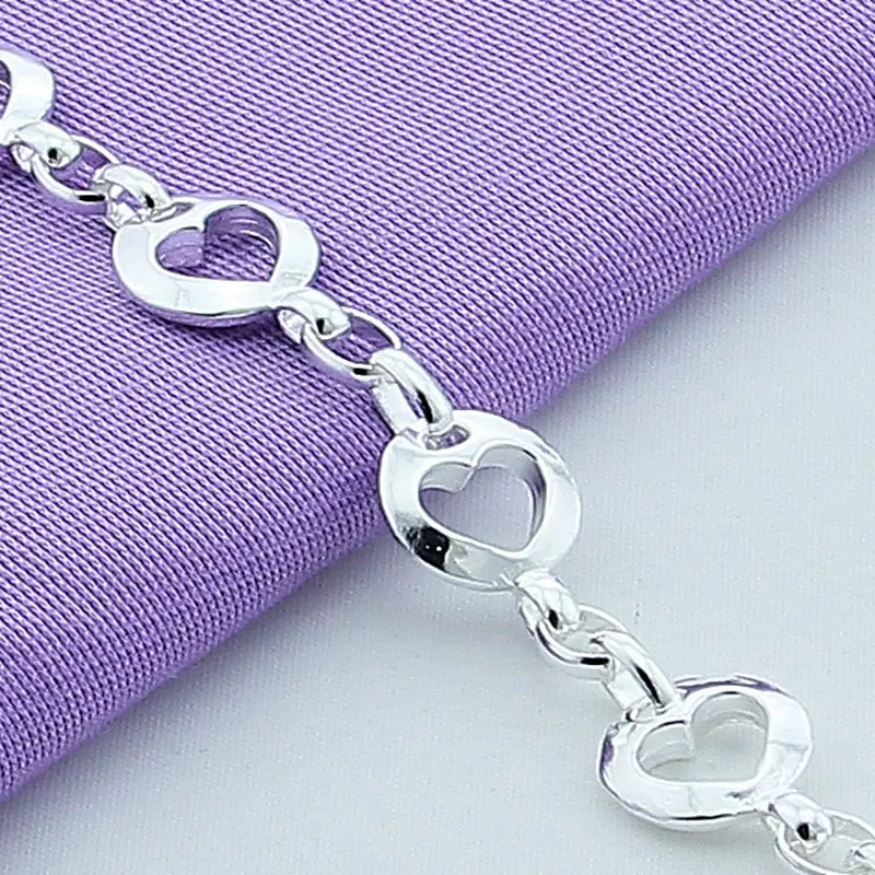 DOTEFFIL 925 argent Sterling pleine coeur chaîne Bracelet mode pour les femmes bijoux de fiançailles de mariage
