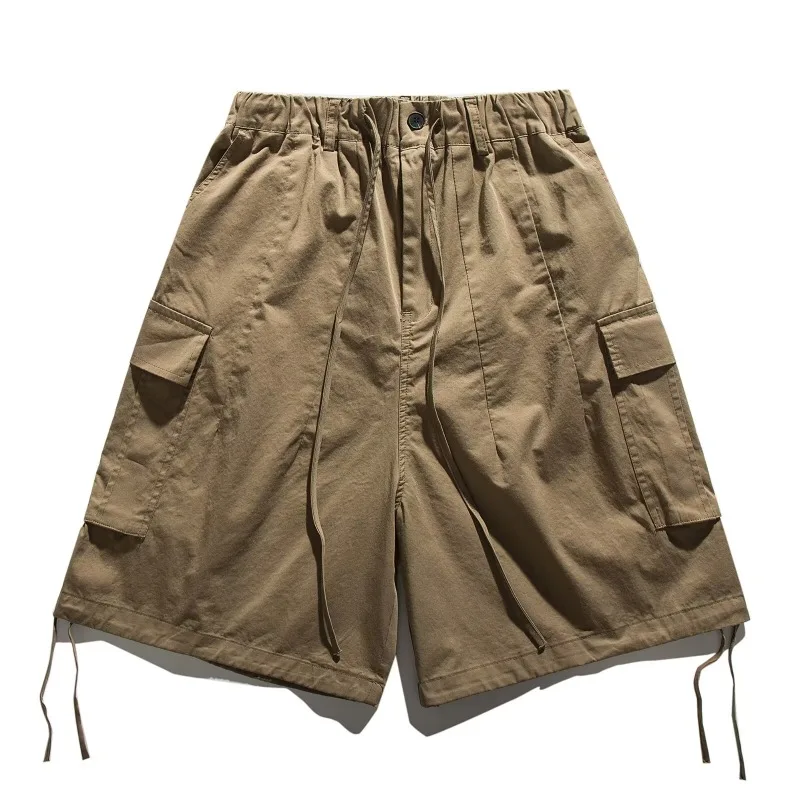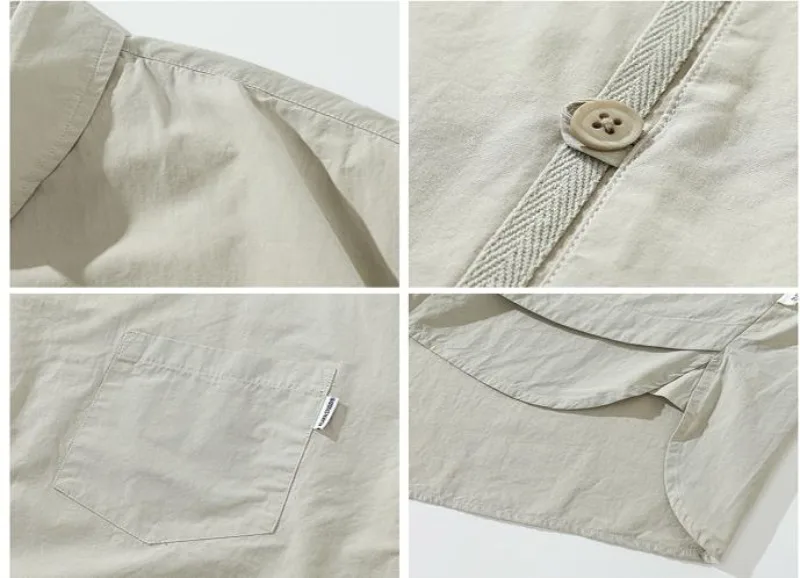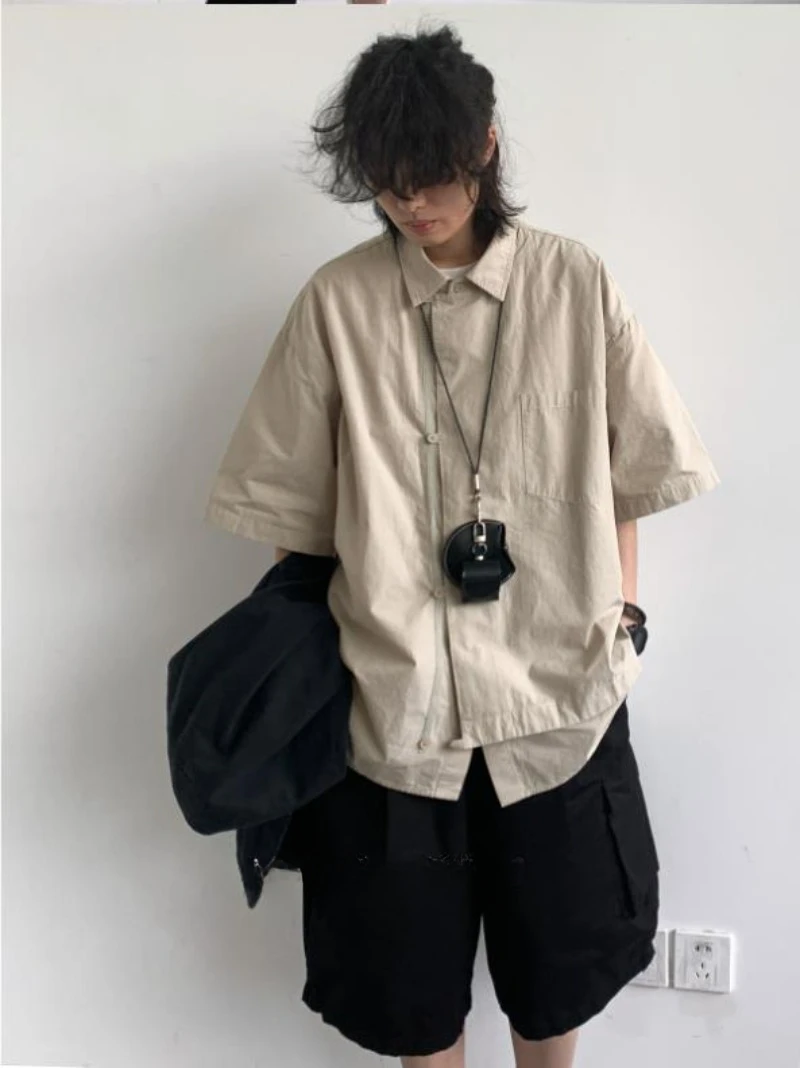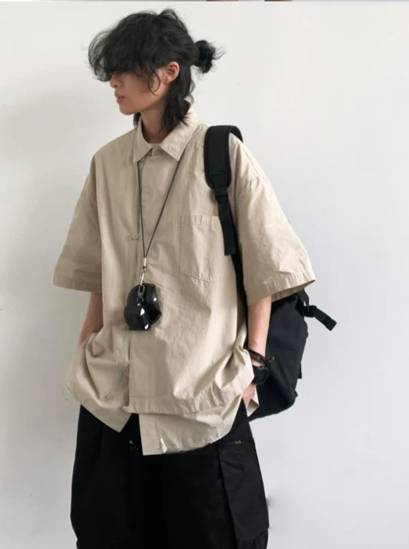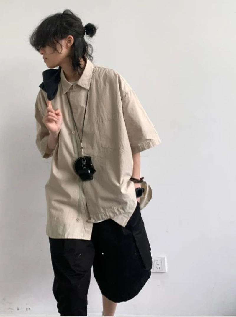 Ensemble coréen pour hommes, chemise à manches courtes + plusieurs poches, Short d'outillage, couleur unie, rétro, tendance d'été, ensemble deux pièces