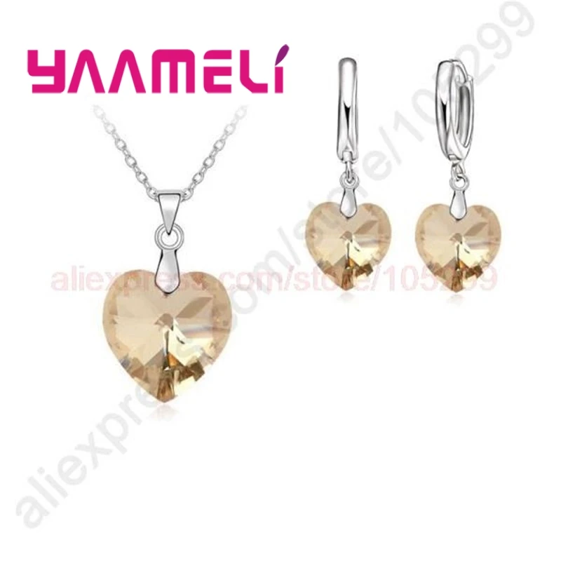 Ensemble de bijoux en forme de coeur d'amour pour femmes, argent regardé 925, patients, mariage, mode, cristal, Pmotpresidence, colliers, boucles d'oreilles
