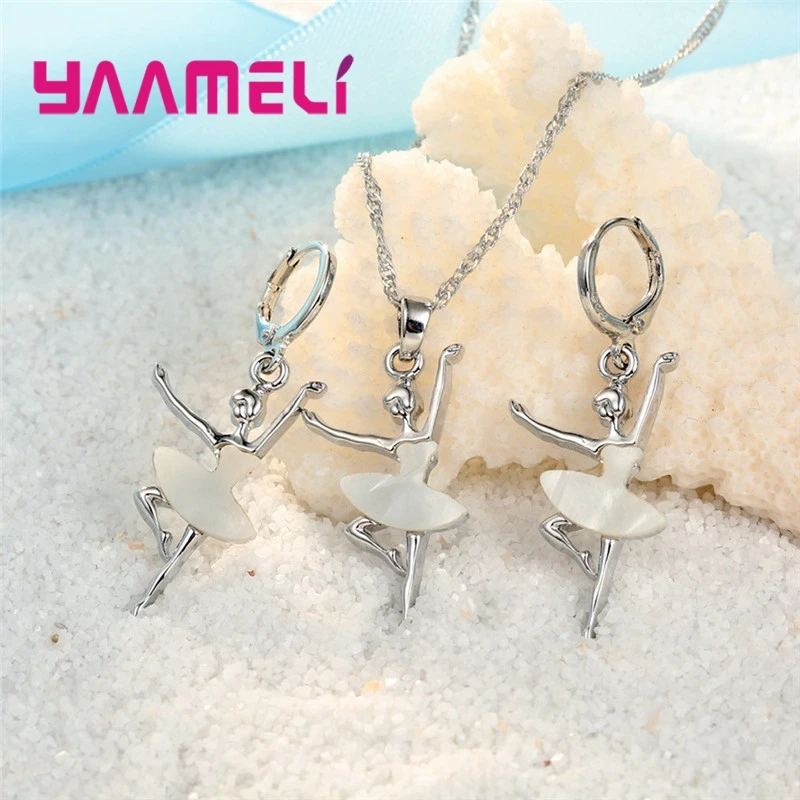 Ensemble de Colliers et Boucles d'Oreilles de Ballet en Argent Sterling 925, Accessoire de ix, à la Mode, pour Femme