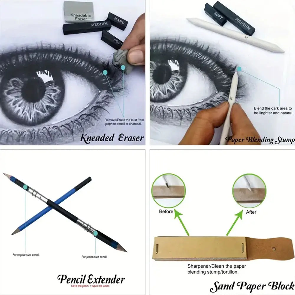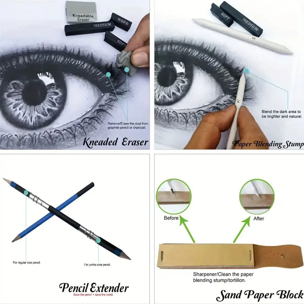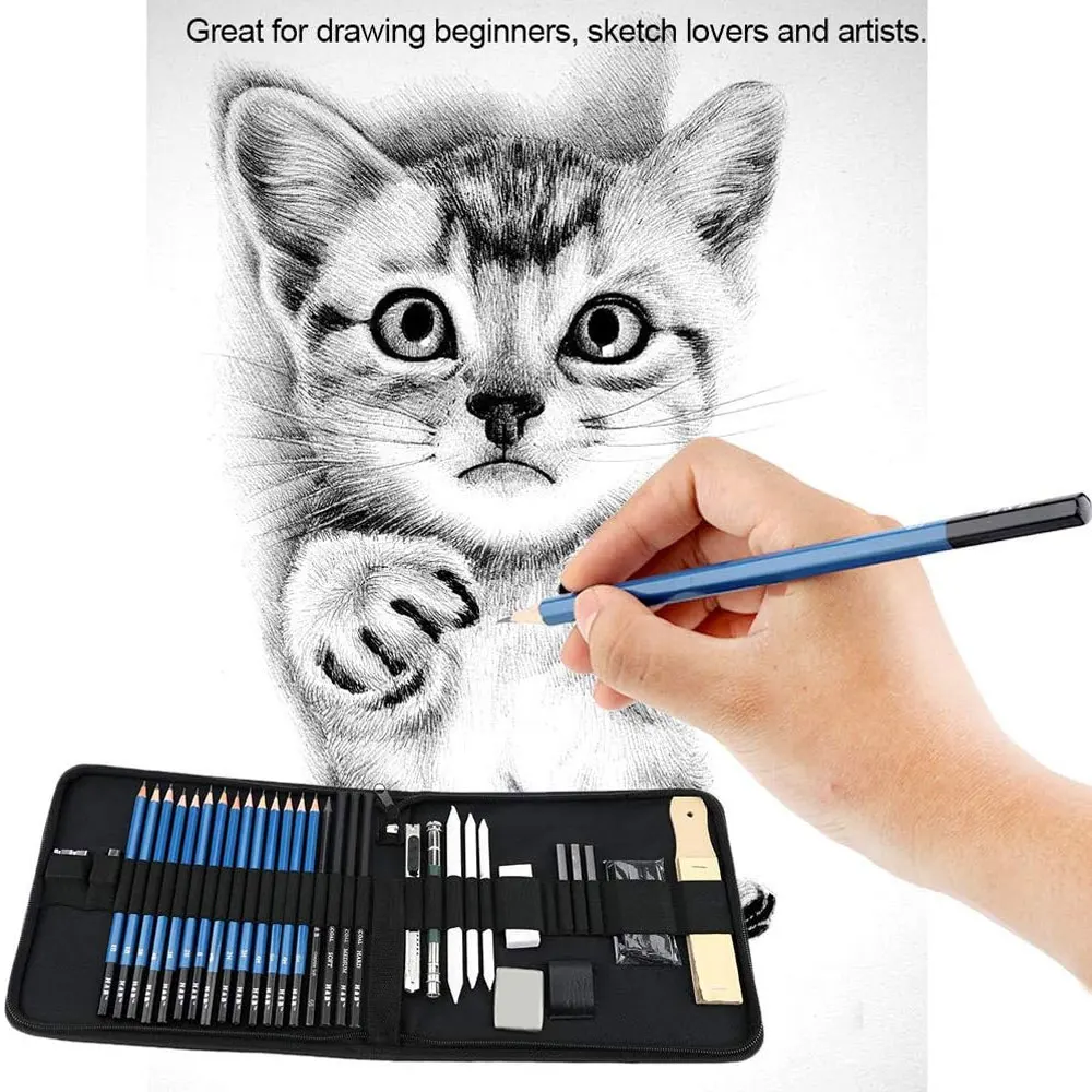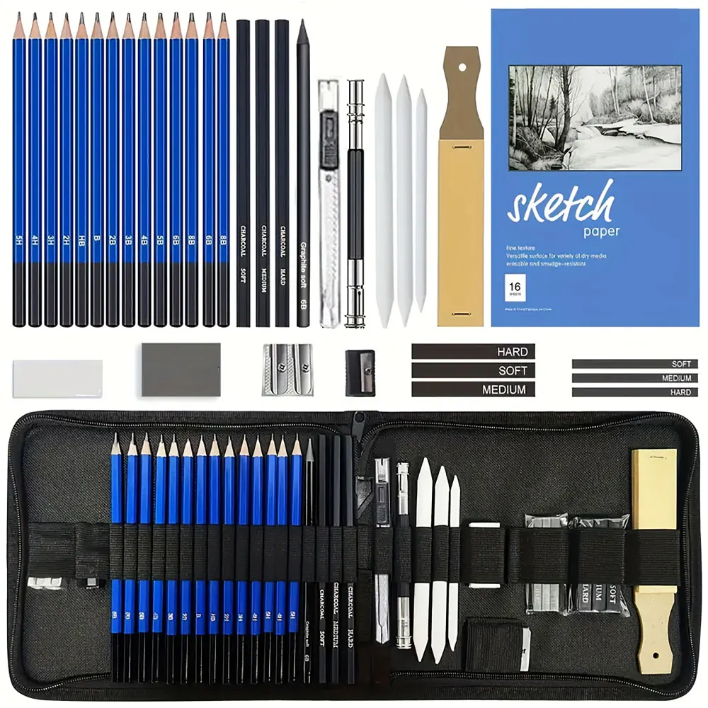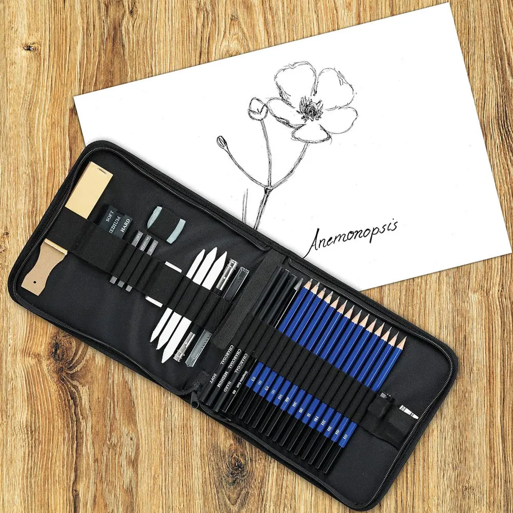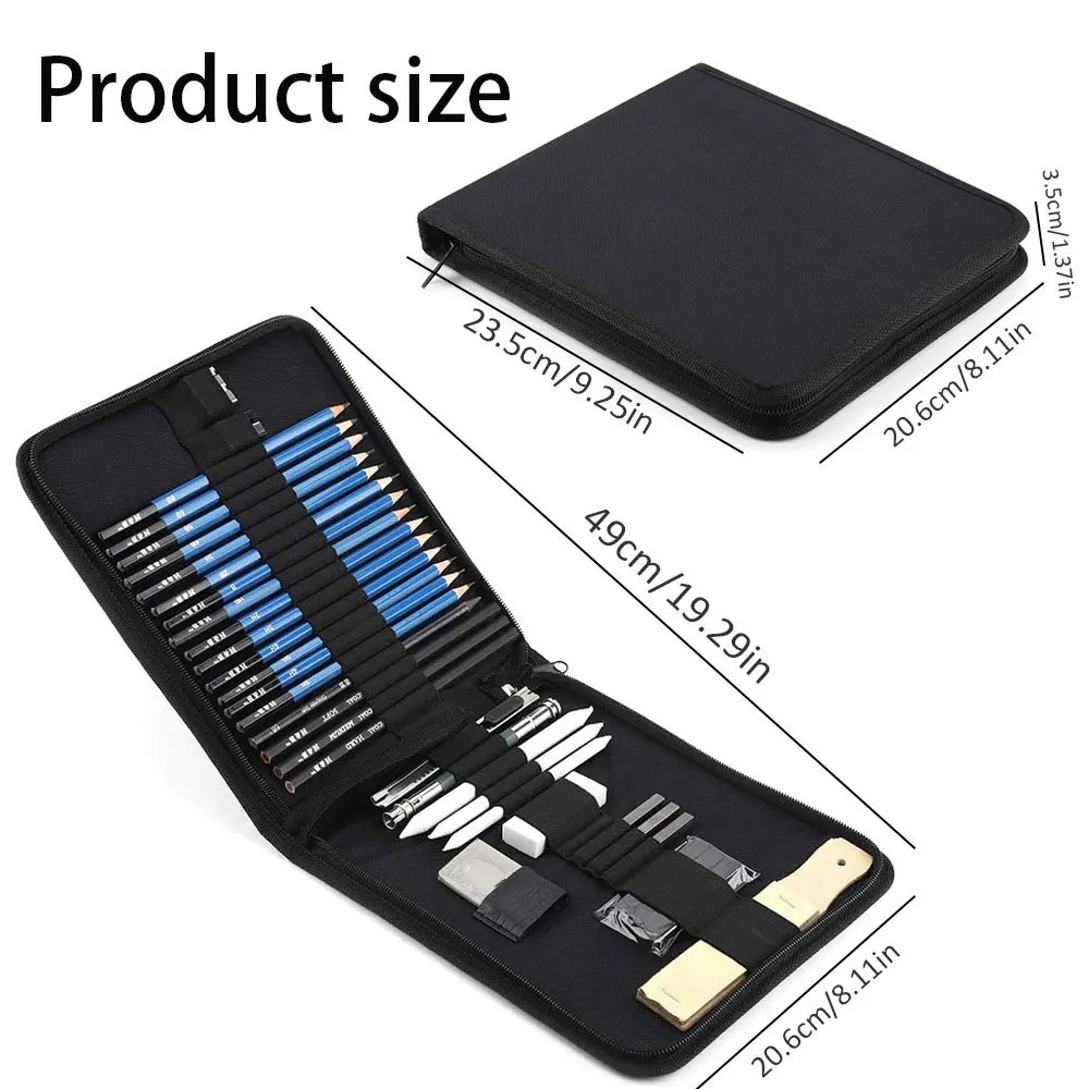 Ensemble de crayons de croquis professionnels 35 pièces avec bâtons de carbone et un sac de rangement portable noir, adapté aux débutants en peindre.