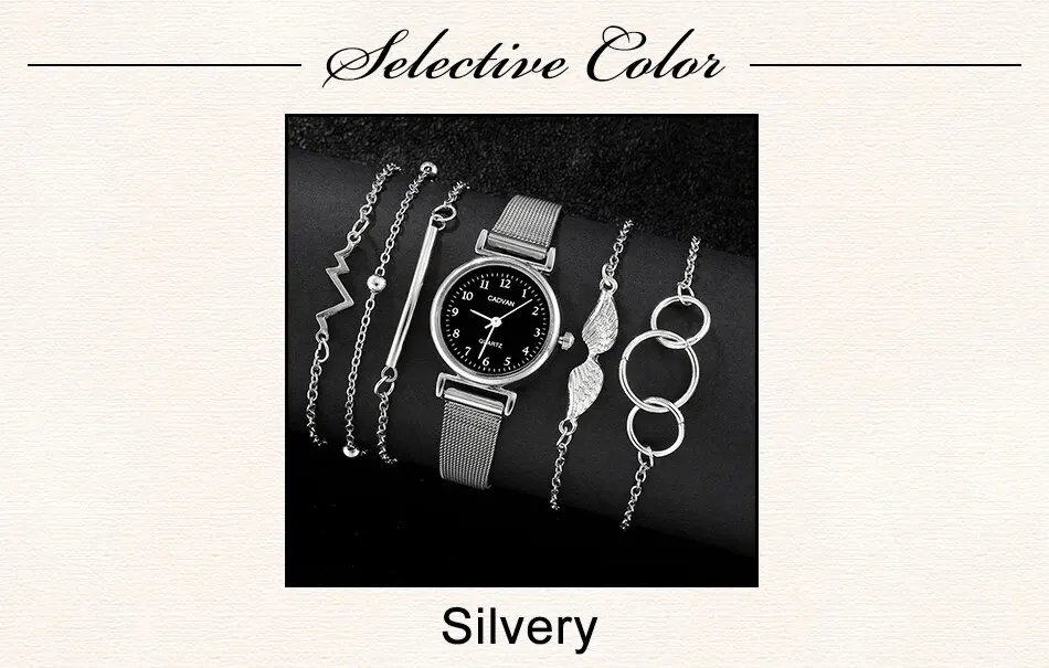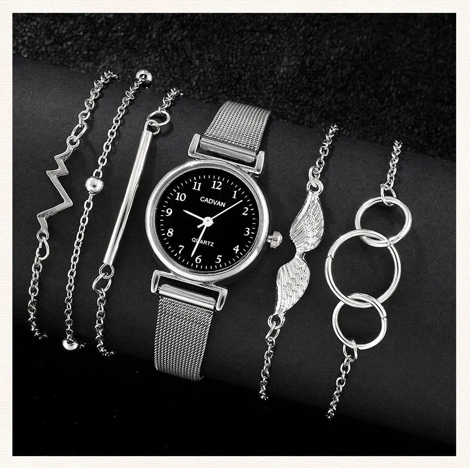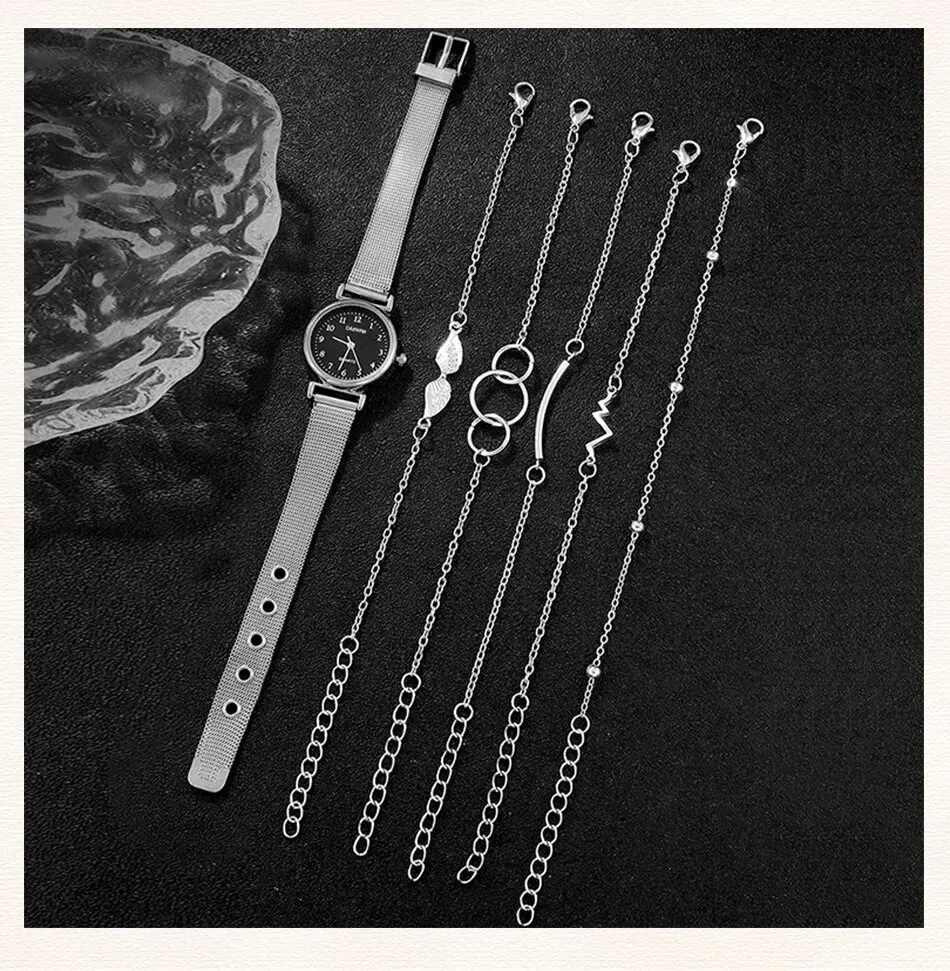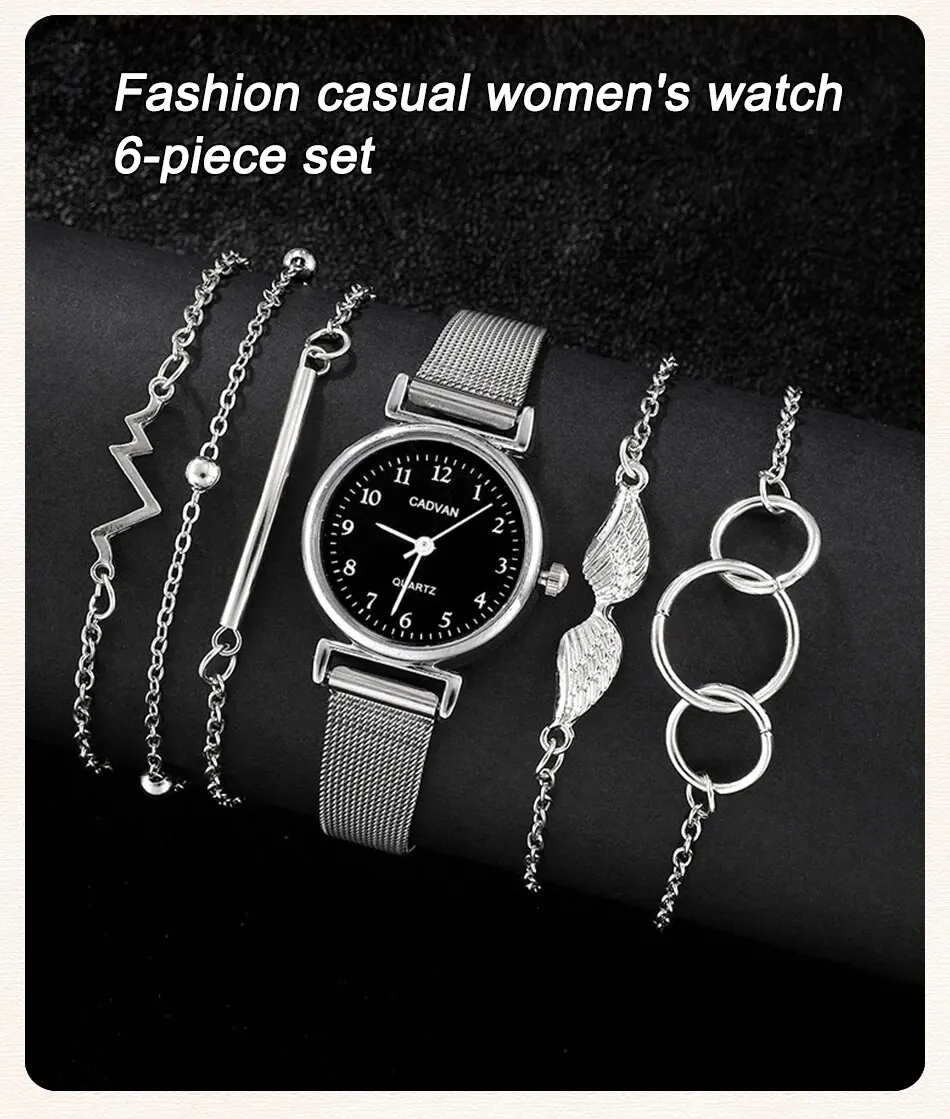 Ensemble de montres à quartz en maille argentée pour femmes, 6 pièces