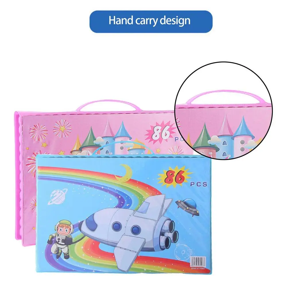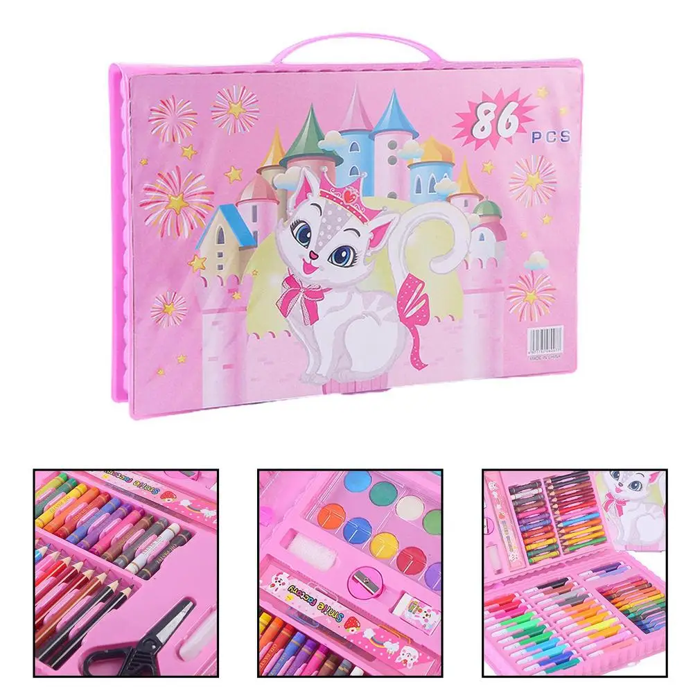 Ensemble de pinceaux de peinture graffiti pour enfants, stylo d'interconnexion, apprentissage d'art, boîte d'acquisition de papeterie, jouets pour enfants, rose, bleu, 86 pièces par ensemble