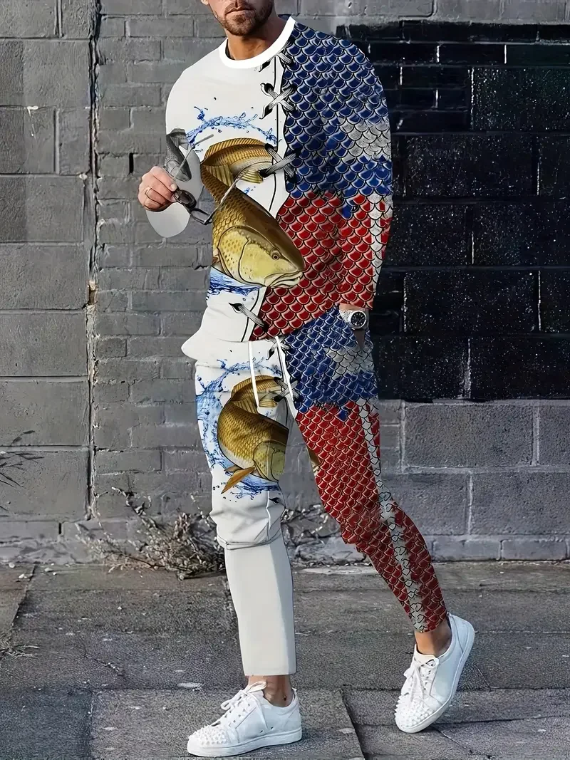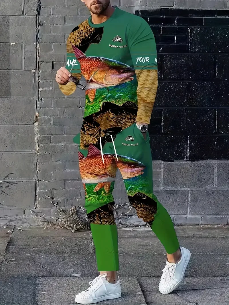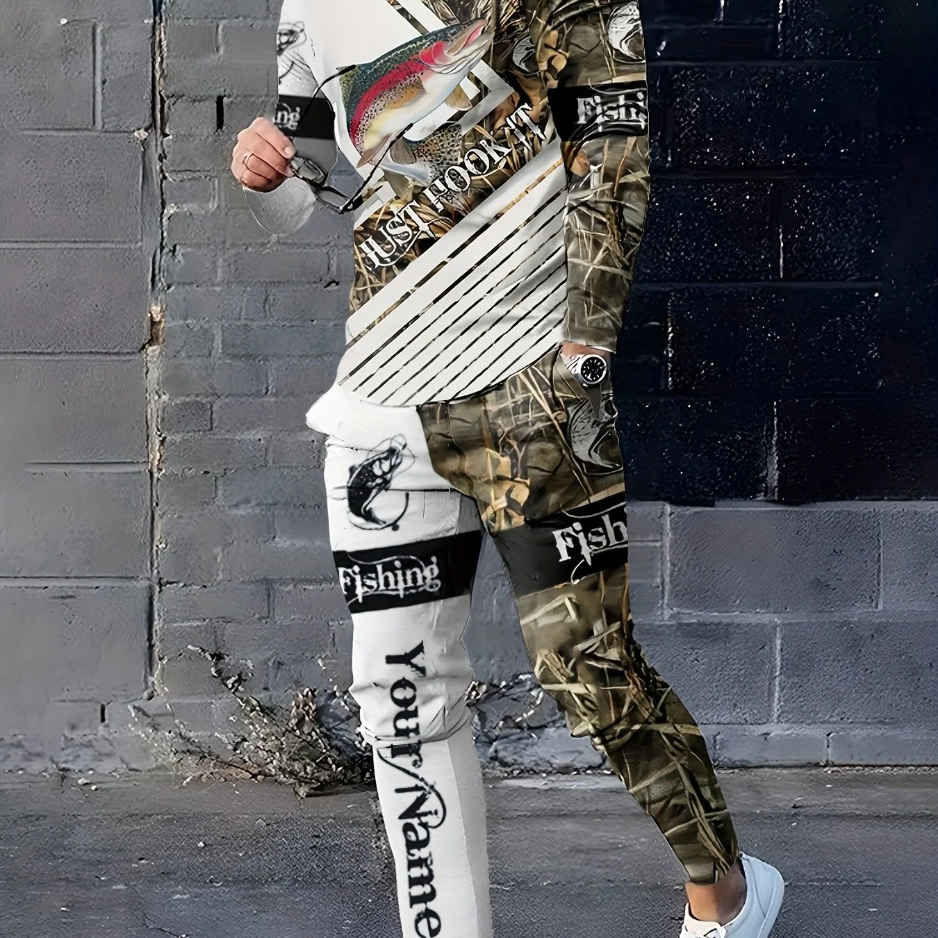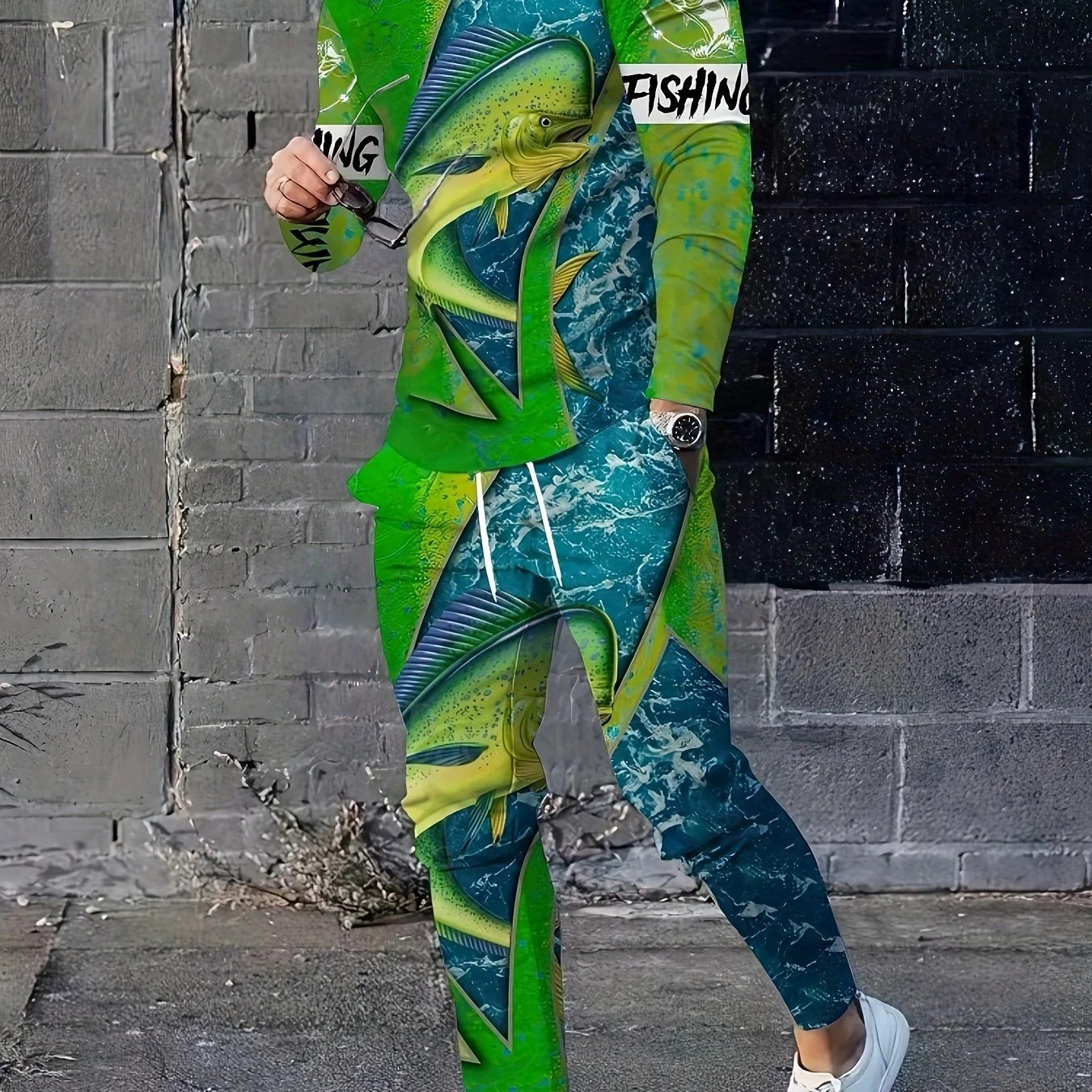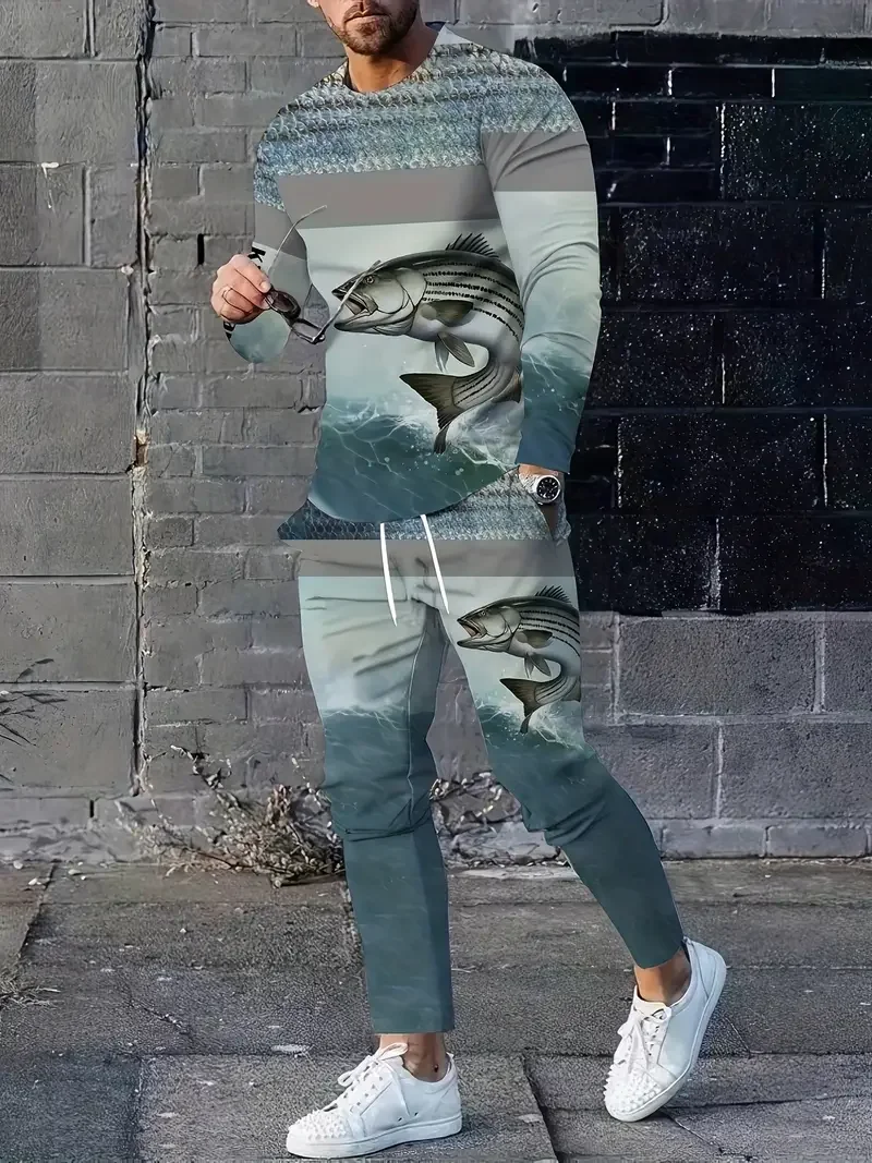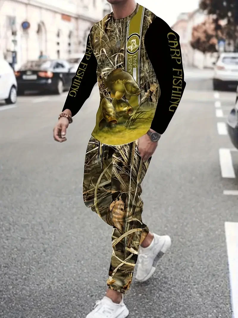 Ensemble de vêtements de sport à manches longues pour hommes, t-shirt de pêche à la carpe, pantalons de survêtement respirants, vêtements de sport trempés, mode cool, automne, fjSet, 2 pièces