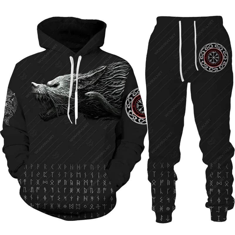 Ensemble sweat à capuche pour hommes, imprimé en 3D, survêtement/pantalon, pull à manches longues, Punk, vêtements de sport décontractés, surdimensionnés, de haute qualité, automne hiver