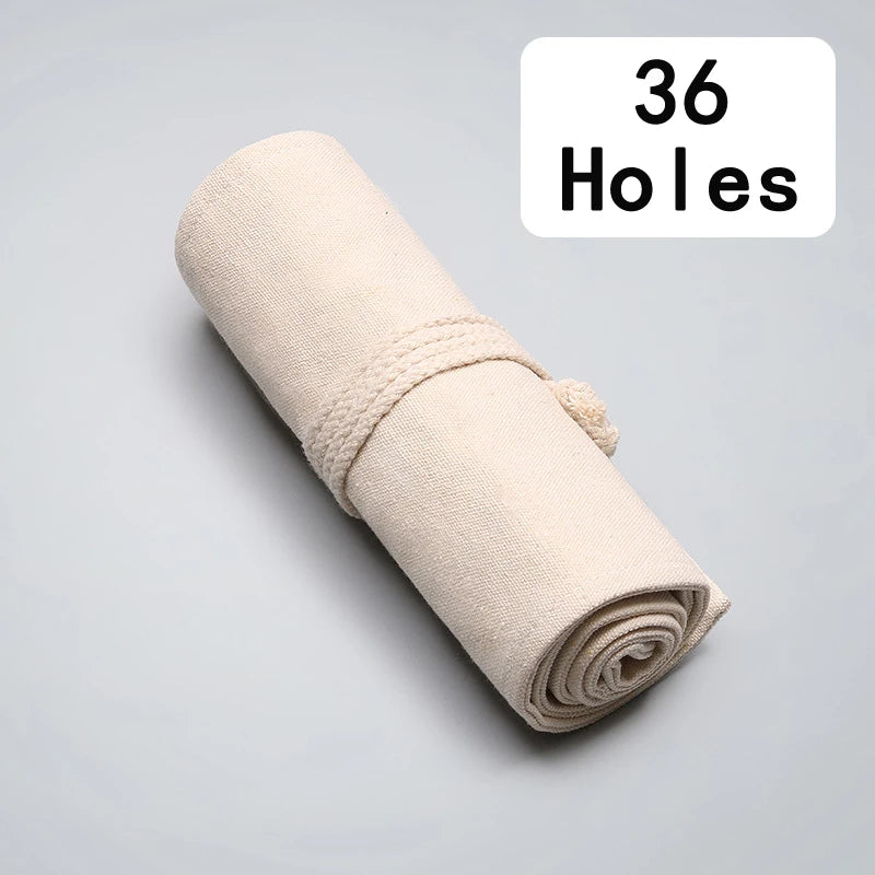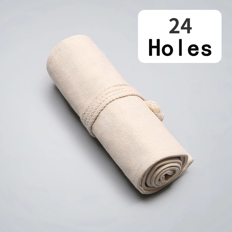 Étui à crayons en toile naturelle, porte-stylo enroulable, crayons de couleur, poudres polyvalentes, outil d'art, rond