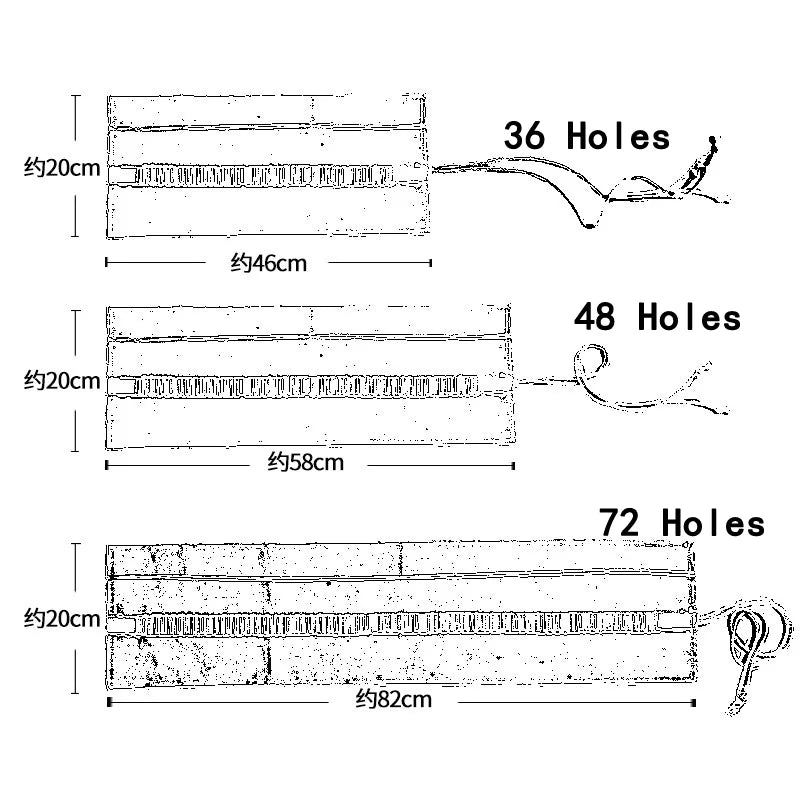 1. Chaque sac à stylo a deux trous extra larges sur les côtés gauche et droit, qui peuvent être utilisés pour placer un petit caoutchouc, un couteau utilitaire et autres.