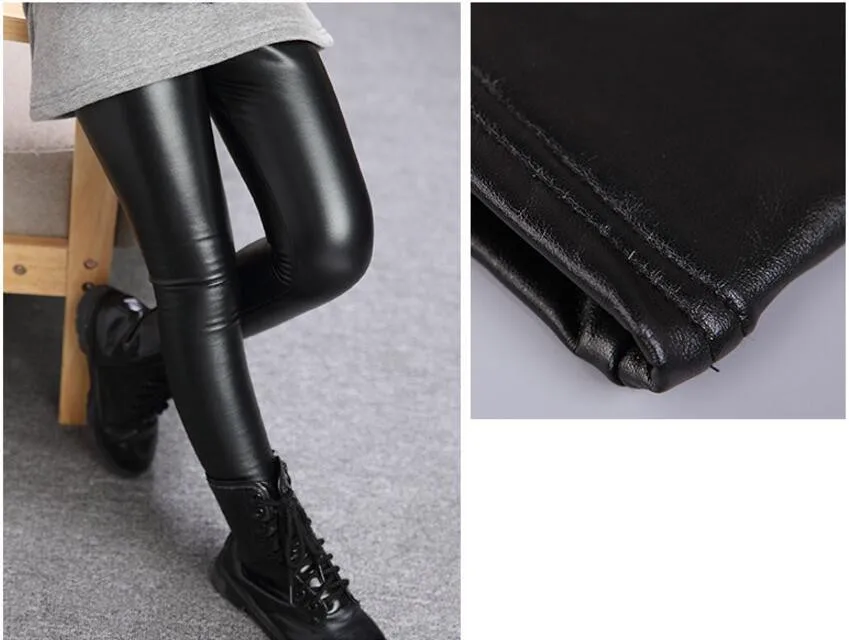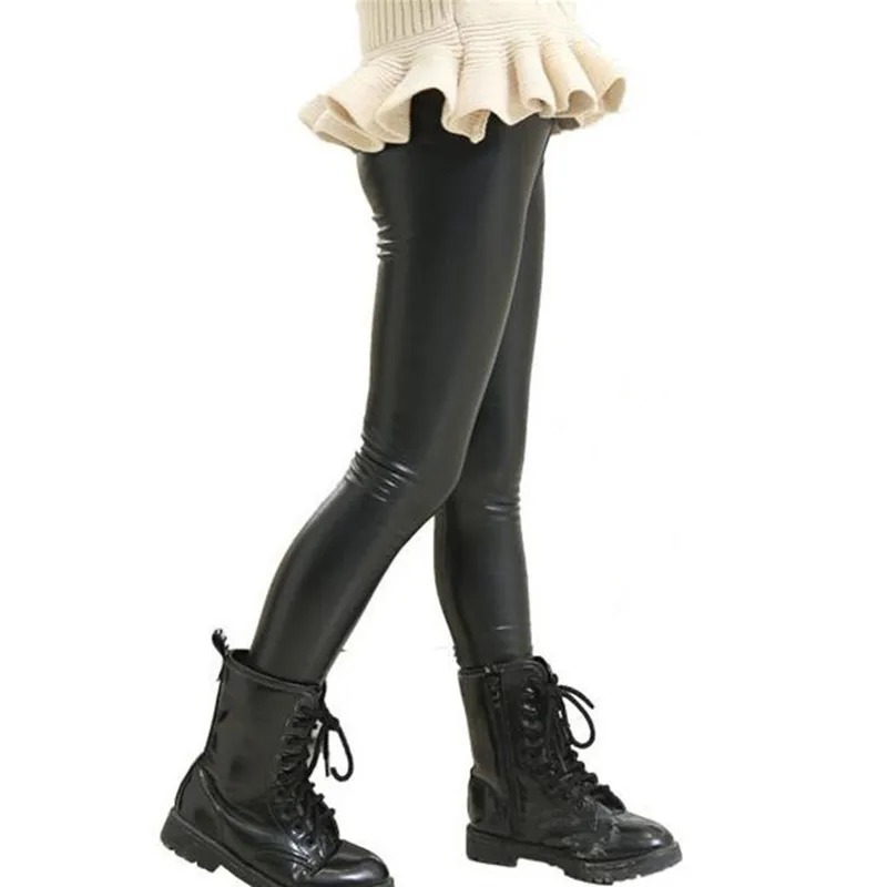 Faux cuir PU adolescents enfants enfants filles Leggings mince maigre mince Legging pour printemps automne