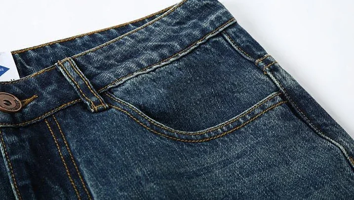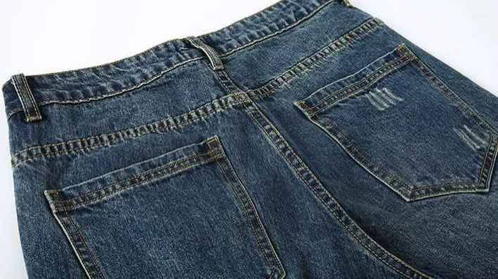 Fjwith Pockets Straight Cowboy Pants for Men, Cropped Jeans for Men, Korean Fashion, Washed, Harajuku, Summer, At Xs, Spring, Autumn